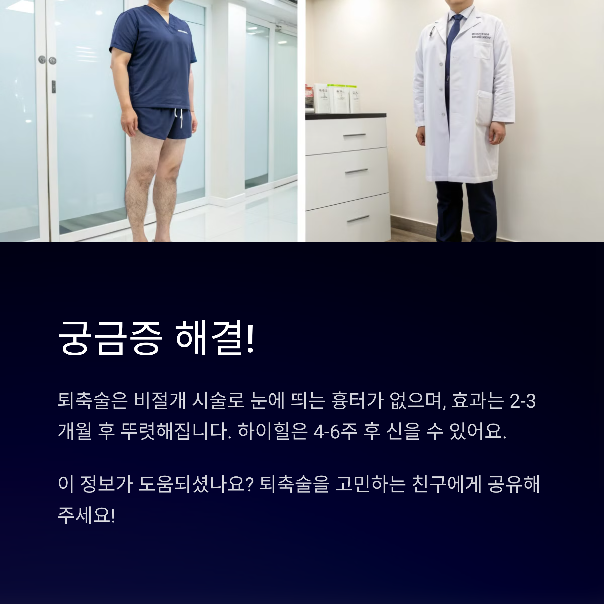 퇴축술 후 회복에 대한 궁금증이 해결되셨나요? 😊 올바른 관리로 빠르게 건강한 종아리를 만들어보세요!