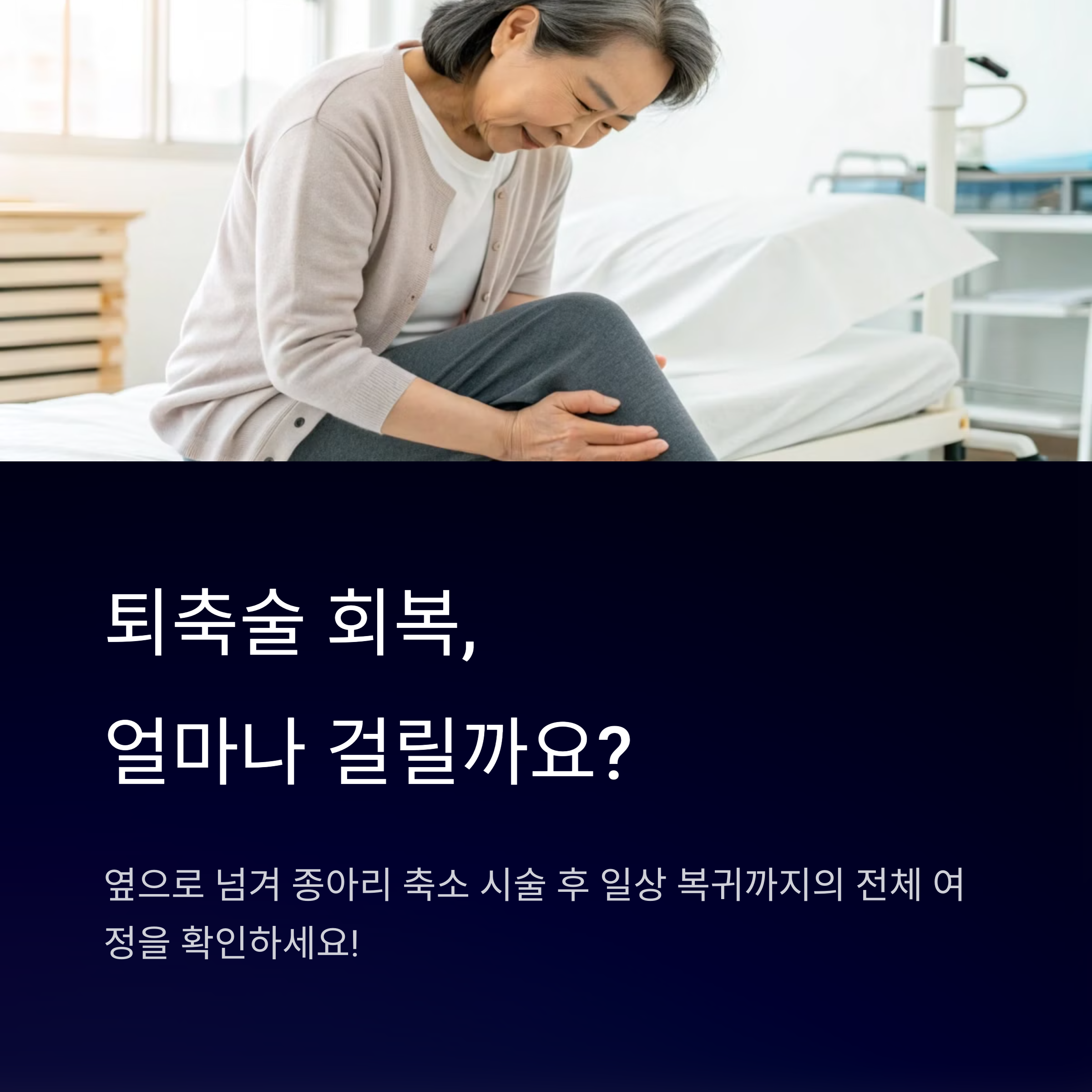 퇴축술을 고민하는 분들이 가장 궁금해하는 점 중 하나가 바로 "회복 기간"이에요. 수술 후 얼마나 빨리 걸을 수 있을지, 일상생활로 복귀하는 데 얼마나 걸릴지 궁금할 수밖에 없죠.