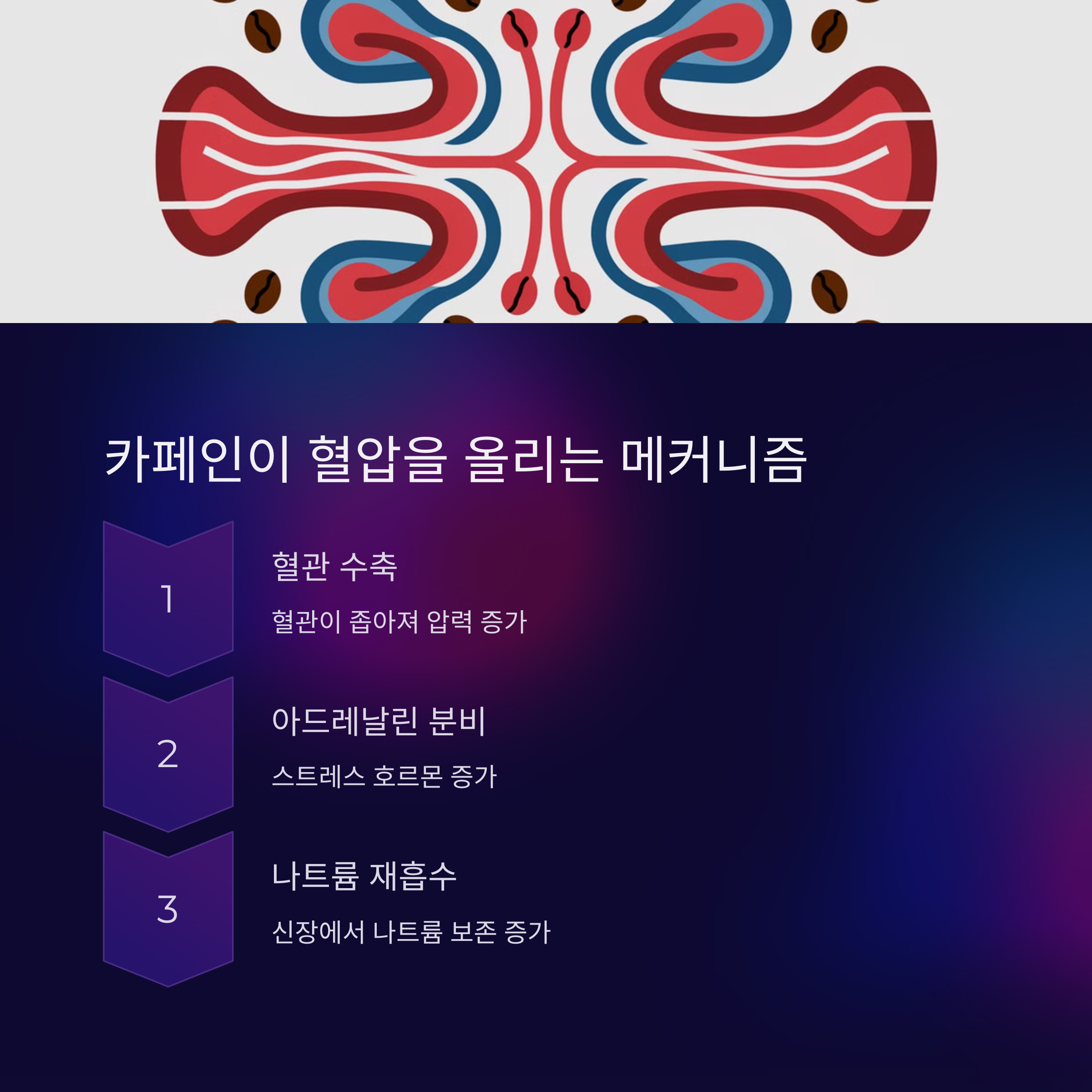 - 📈 혈관 수축 - 카페인은 혈관을 일시적으로 좁히면서 혈압을 높일 수 있어요.