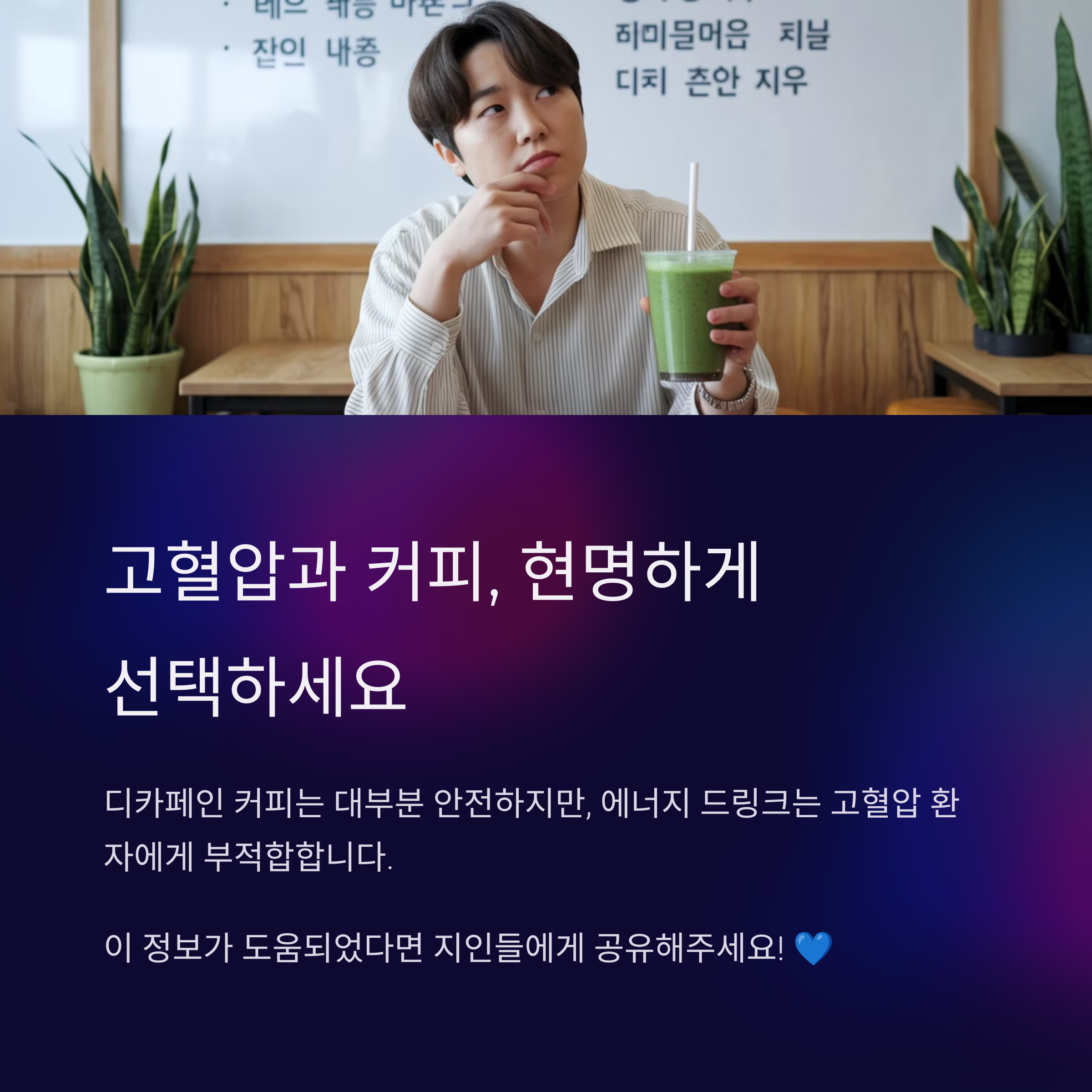 특히 **디카페인 커피**는 커피의 맛을 즐기면서도 혈압 상승 걱정을 덜 수 있는 좋은 선택이에요. ☕✨