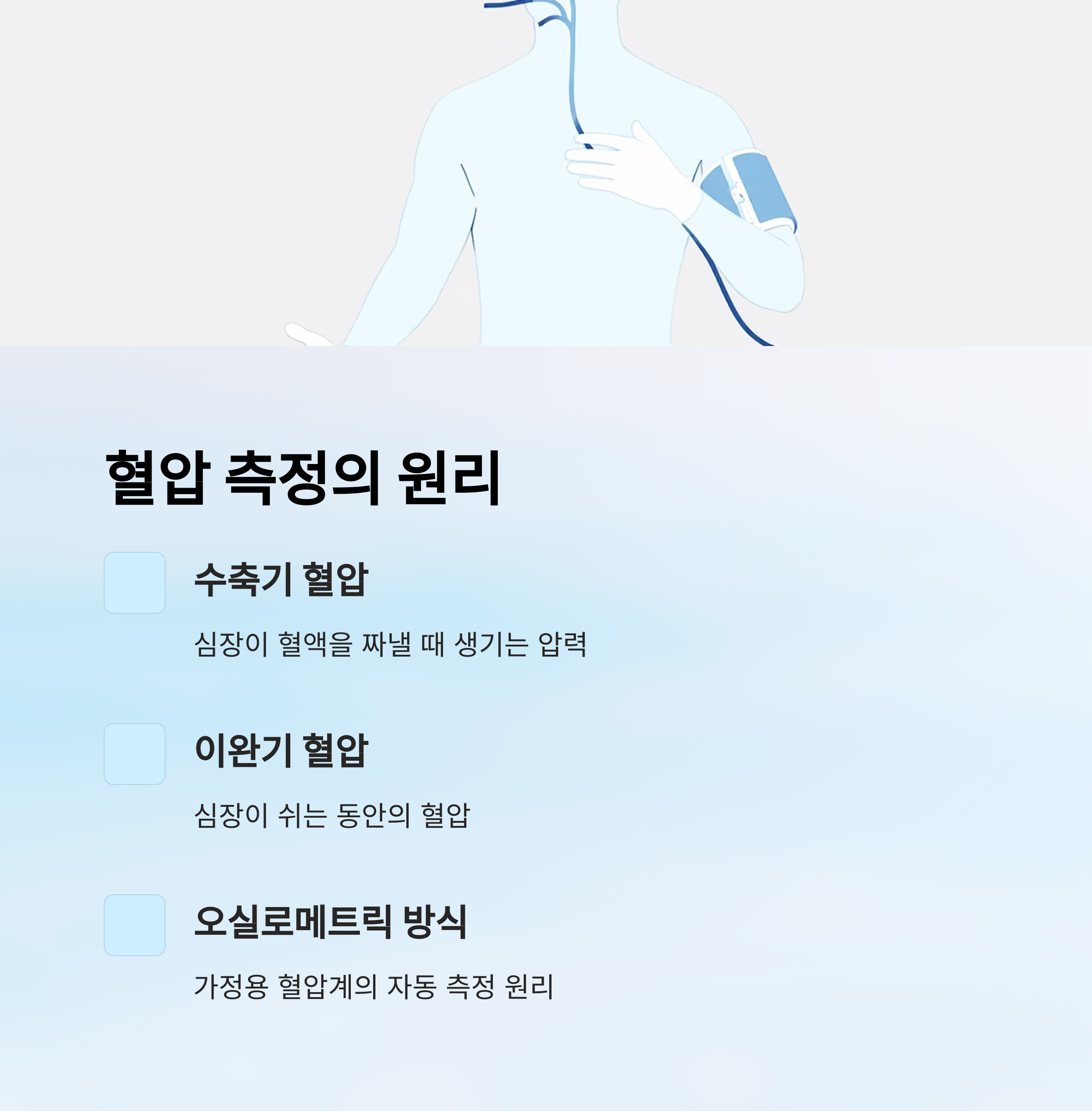 혈압은 우리 혈관 안을 흐르는 혈액이 혈관 벽에 미치는 압력을 뜻해요. 이 압력은 심장이 수축하거나 이완할 때마다 달라지는데, 이걸 각각 수축기 혈압과 이완기 혈압이라고 불러요. 가정용 혈압계는 이 두 가지 값을 자동으로 측정해서 화면에 보여주는 방식이랍니다.