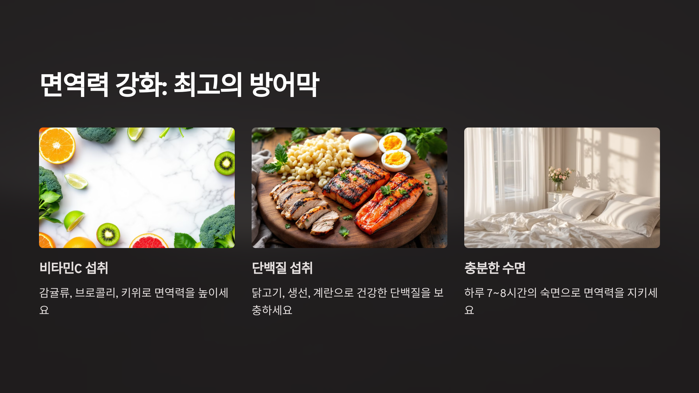 2. 🥦 면역력 강화: 건강한 몸이 최고의 방어막