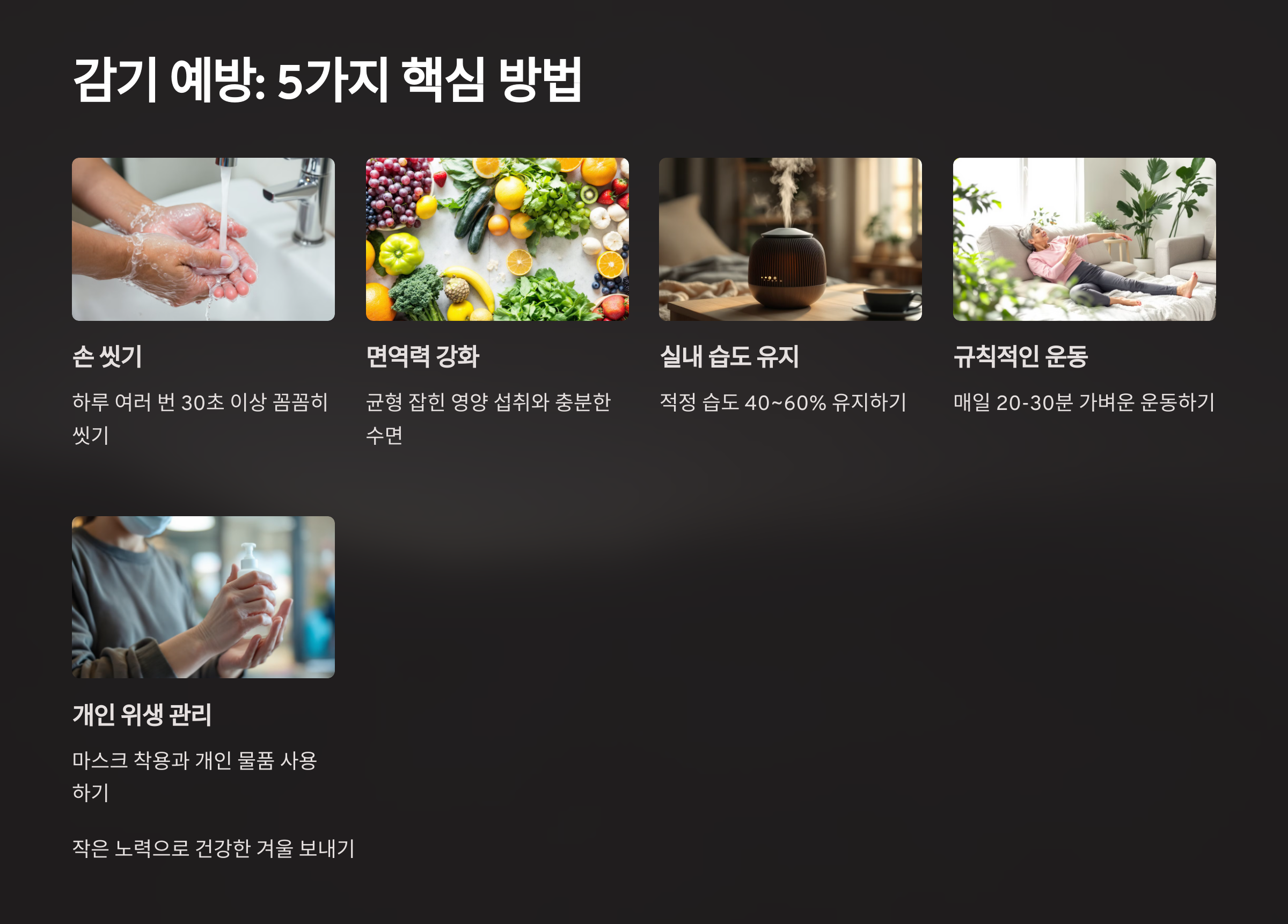 ✅ Tip: 균형 잡힌 식단과 충분한 휴식은 감기 예방의 필수 요소랍니다!