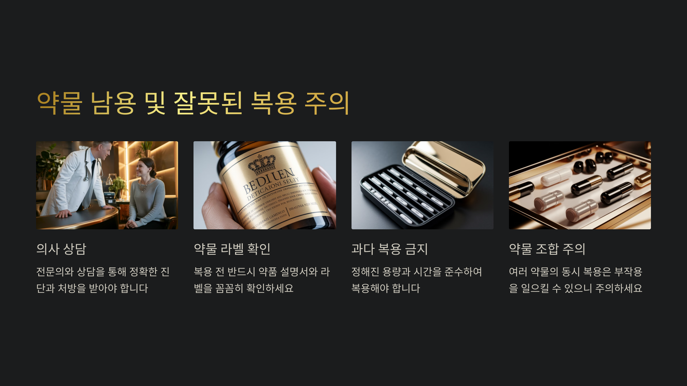 감기 증상을 빨리 없애고 싶은 마음에 약물을 과다 복용하거나 잘못된 약물을 사용하는 경우가 있어요. 이는 오히려 건강에 더 큰 해를 끼칠 수 있답니다. 약물 남용은 간과 신장에 무리를 줄 뿐만 아니라 부작용을 초래할 가능성도 높아요.