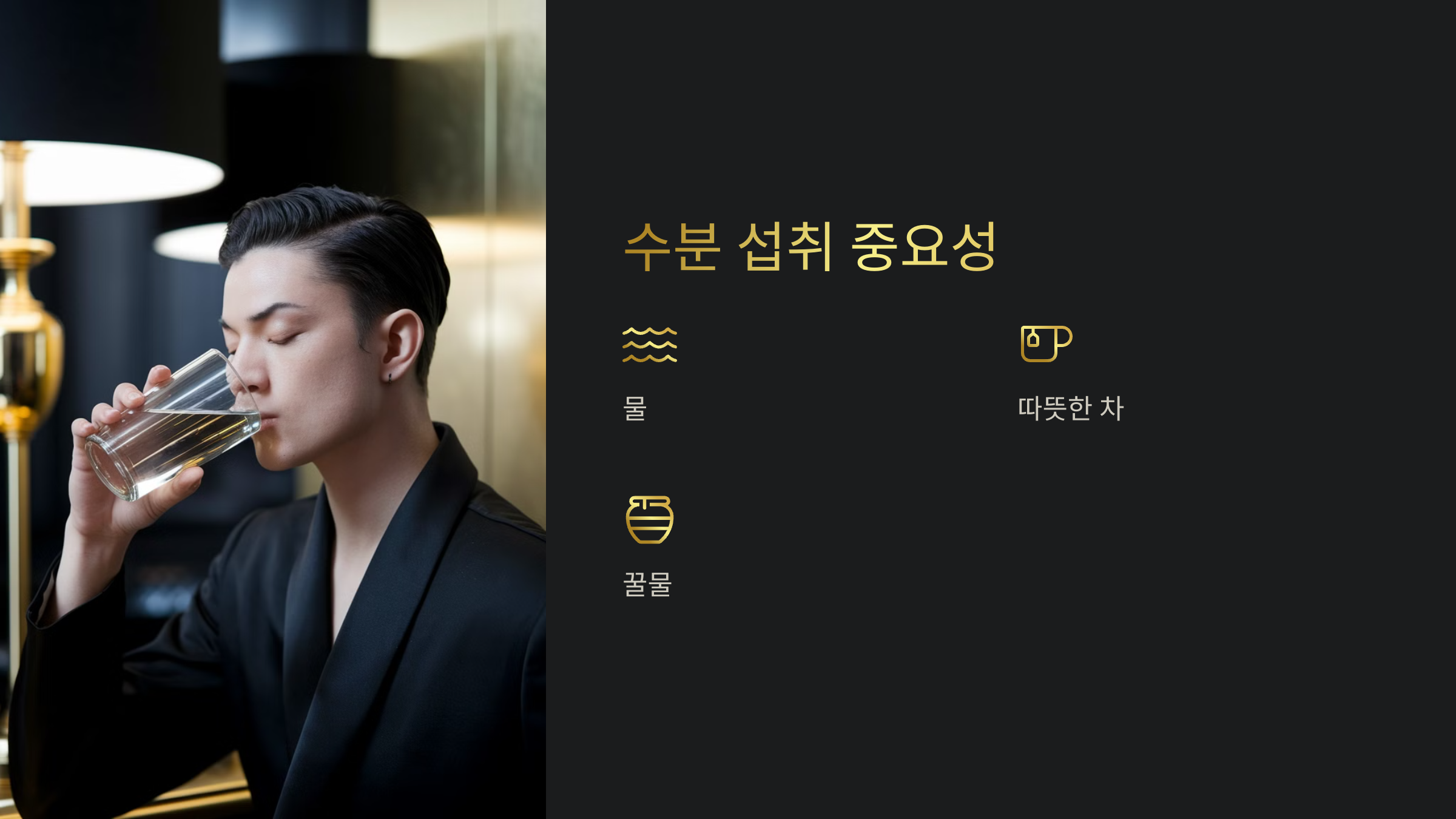 대신 따뜻한 차나 꿀물처럼 몸에 부담을 주지 않고 수분 보충을 돕는 음료를 선택해 보세요. 이러한 음료는 목을 진정시키고 몸의 회복을 촉진하는 데 도움을 줄 거예요.