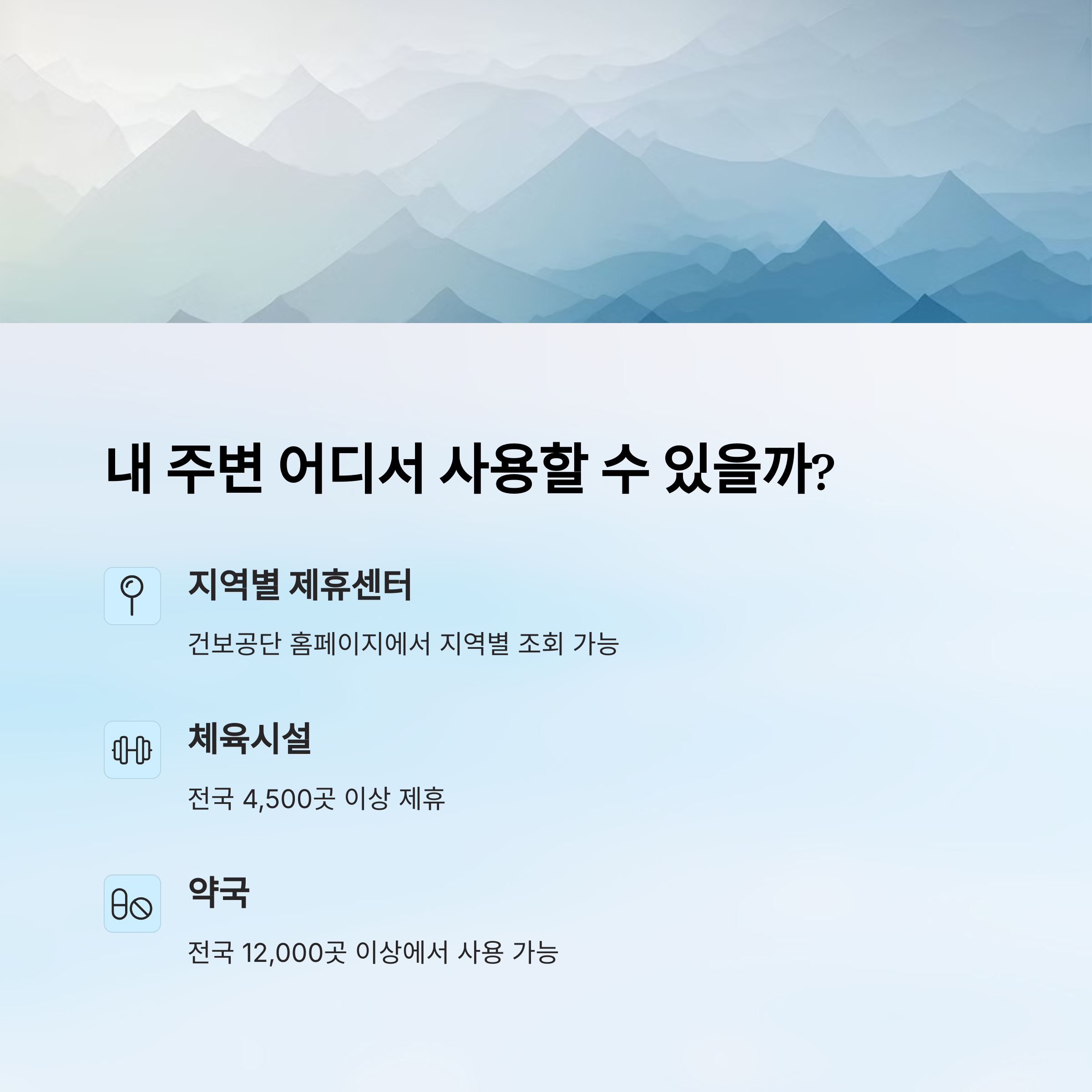 예를 들어 서울에선 약국과 자연식품몰, 경기 지역은 건강밸런스짐이나 병원, 부산은 PT센터와 한의원에서 쓸 수 있어요. 👍