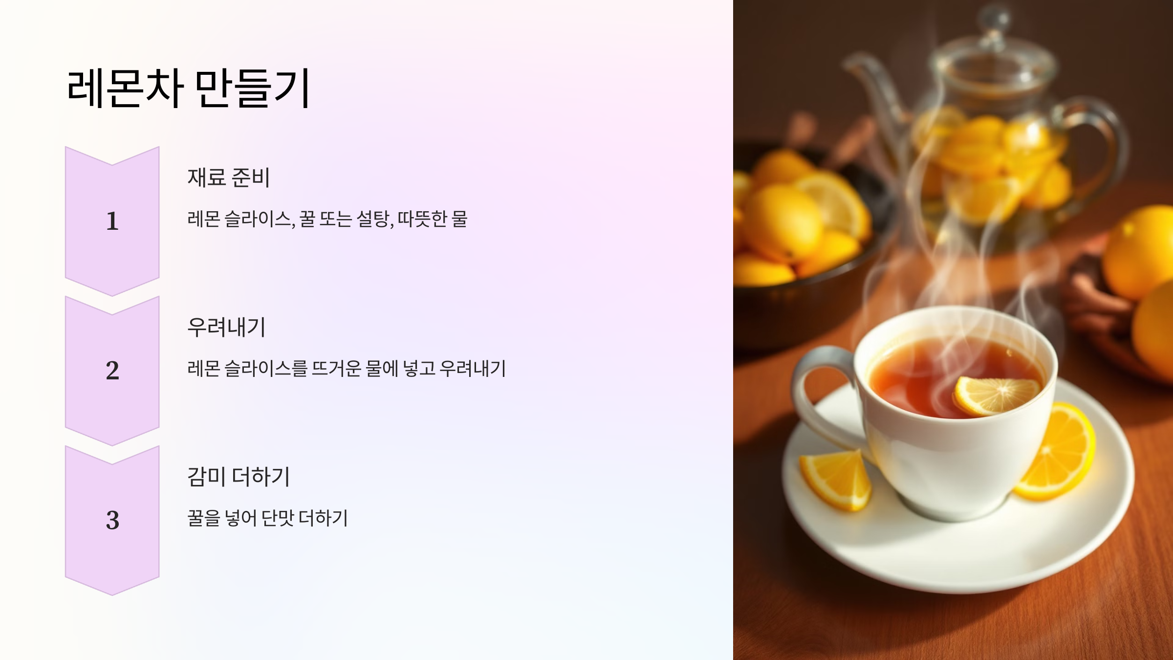 - 레몬 슬라이스를 뜨거운 물에 넣고 우려냅니다.