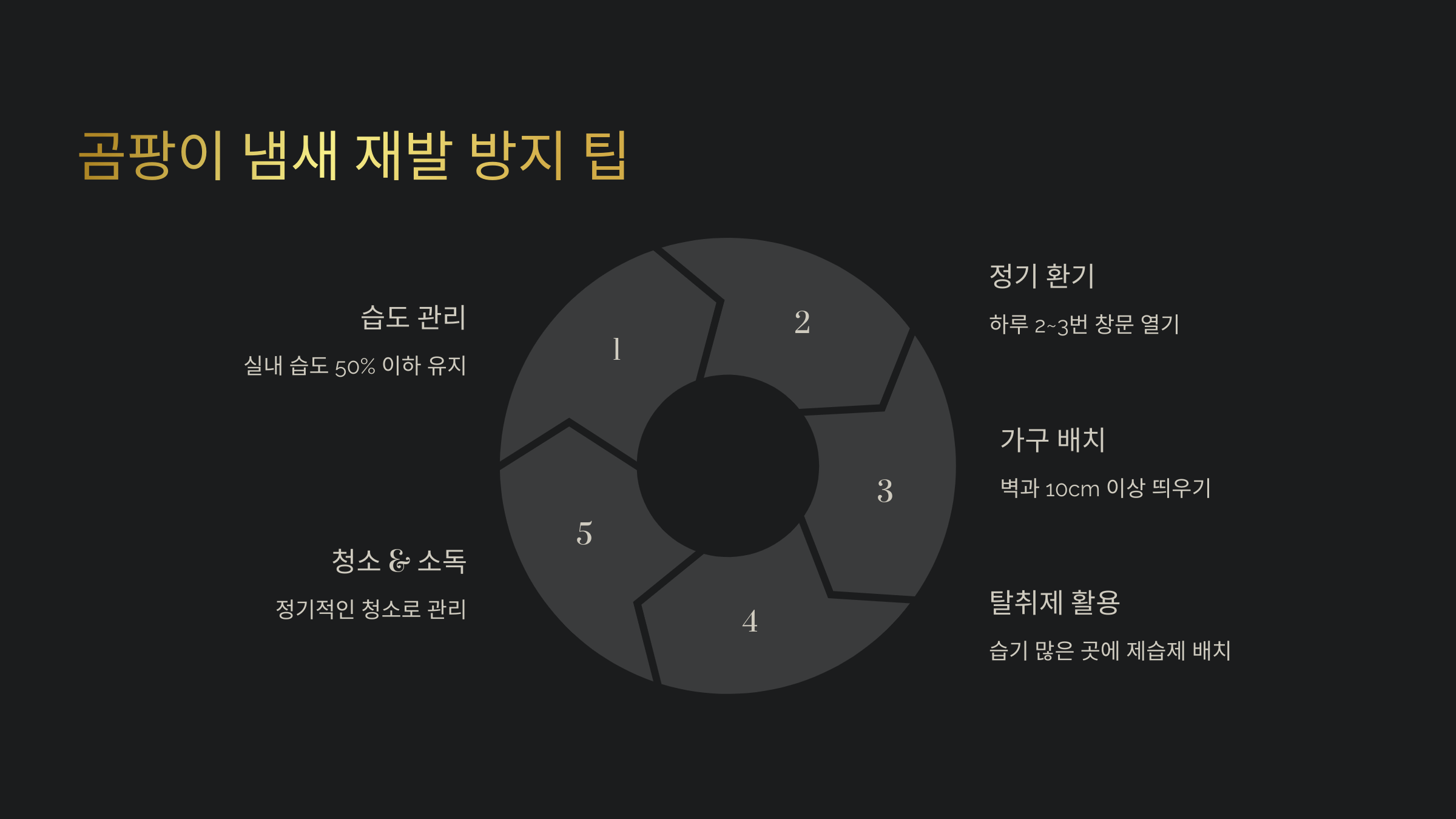 ✔ **1. 실내 습도 50% 이하 유지** → 제습기, 에어컨의 제습 기능 활용