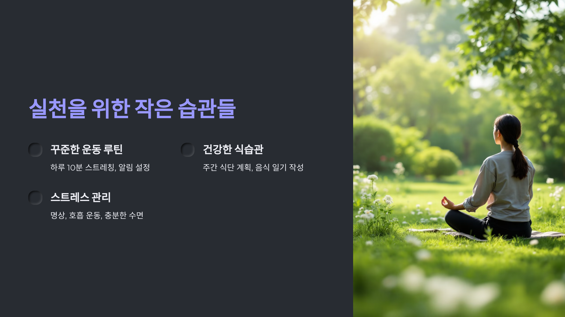 - 하루 10분씩 스트레칭으로 시작해보세요.