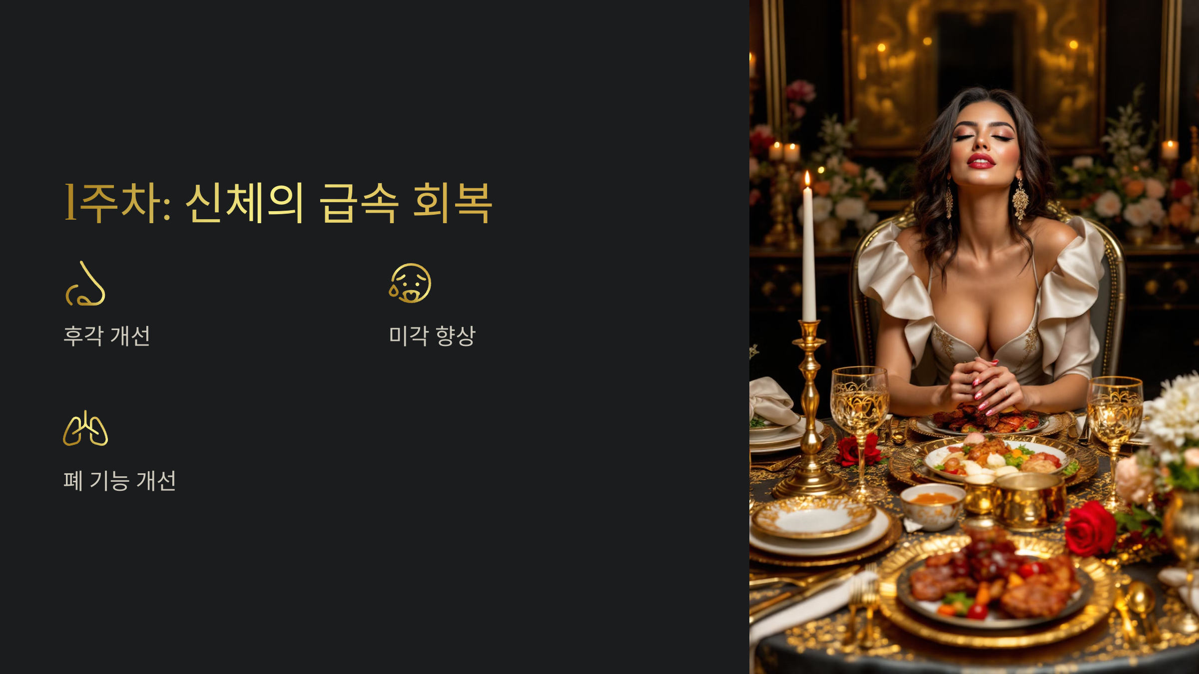 금연을 시작하고 일주일이 지나면, 후각과 미각이 크게 개선되기 시작해요. 흡연으로 인해 둔화되었던 감각 기관이 정상적으로 작동하면서 음식 맛이 더 풍부하게 느껴지고, 냄새를 더 잘 맡을 수 있어요.