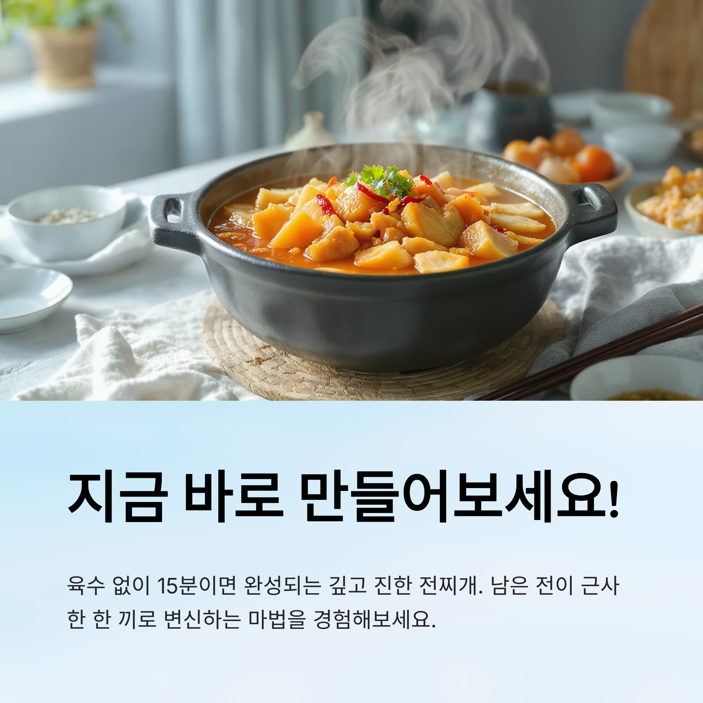 이 레시피 하나면 남은 전도 근사한 한 끼로 재탄생하고, 번거로운 육수 내기도 필요 없어요. 특히 냄새 걱정 없이 깔끔한 국물 맛을 원한다면 이 방법이 제격이랍니다. 지금부터 요리의 마법, 같이 알아보자고요!