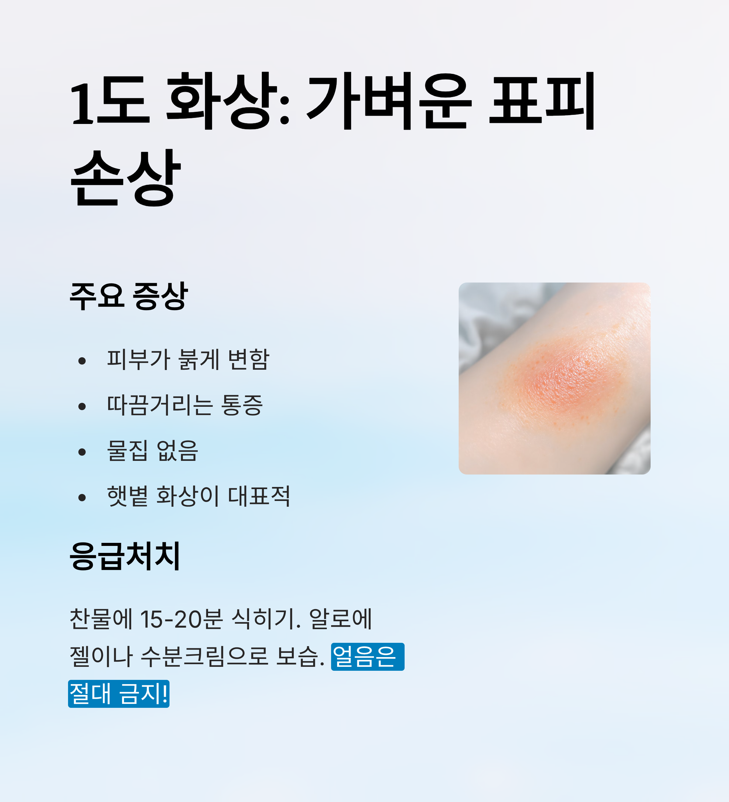 | 1도 | 식히기 + 보습 | 얼음 금지 |