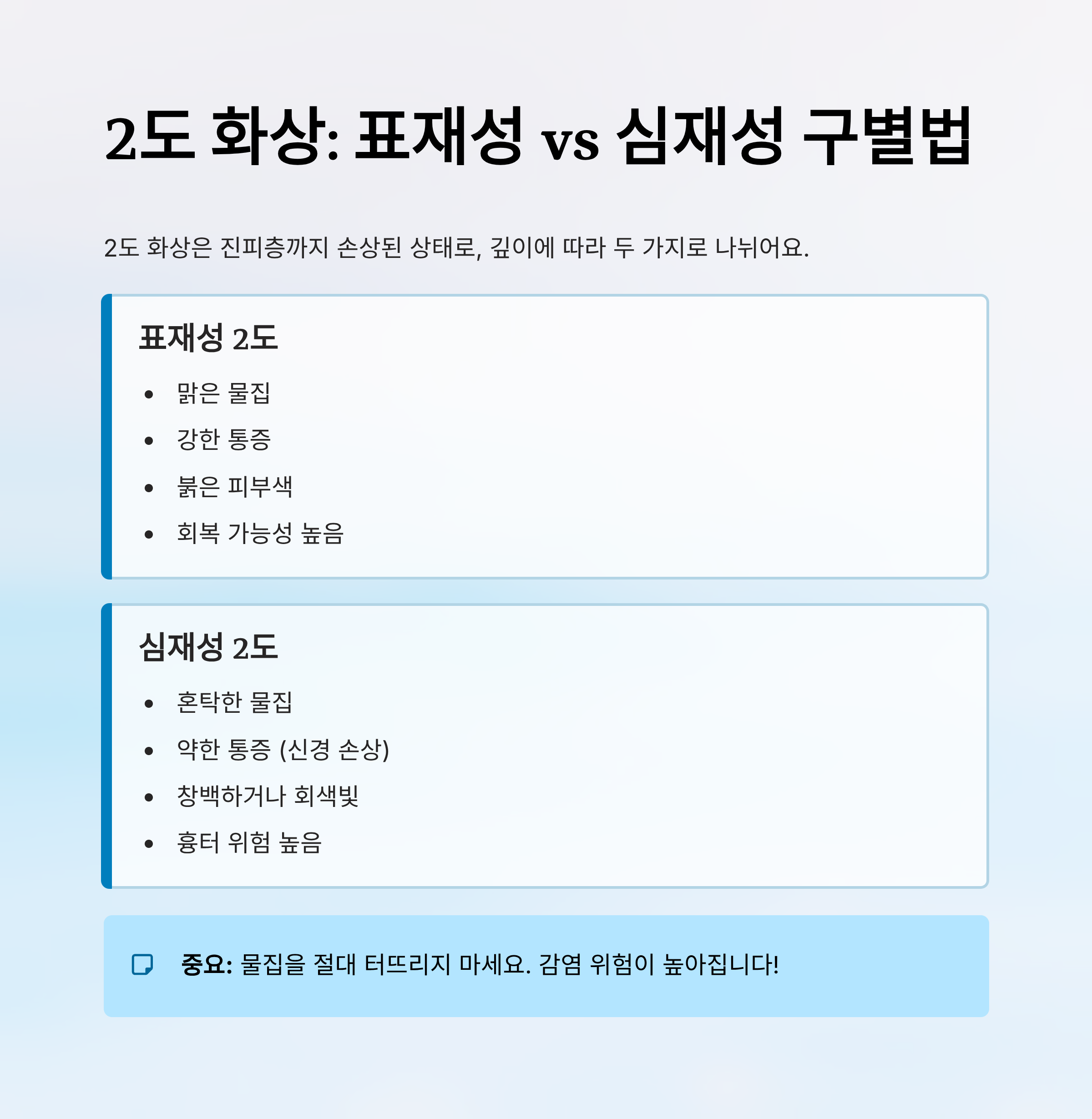 🔥 2도 화상: 표재성 vs 심재성 구별