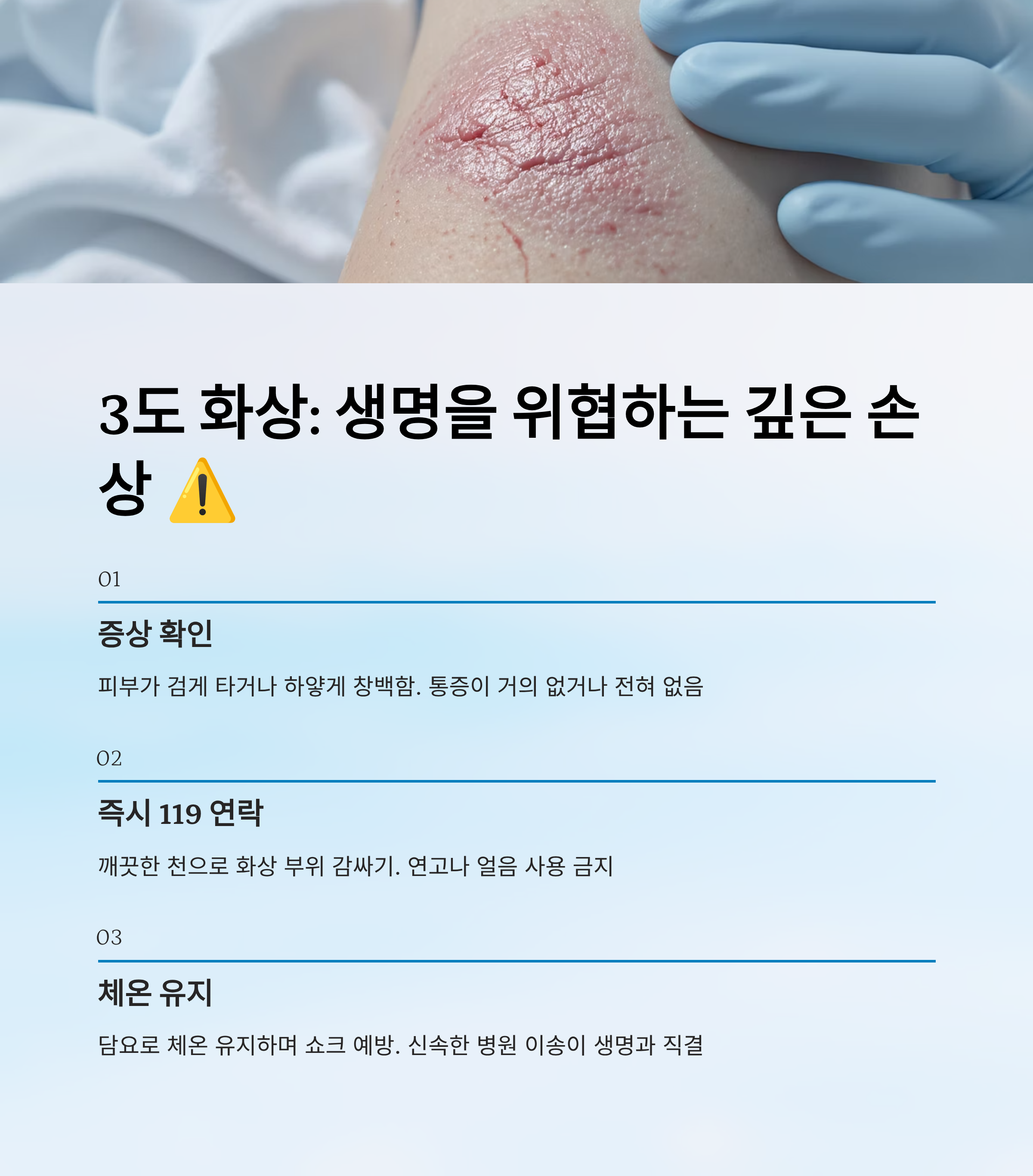 ⚠️ 3도 화상: 깊은 조직 손상 응급대응