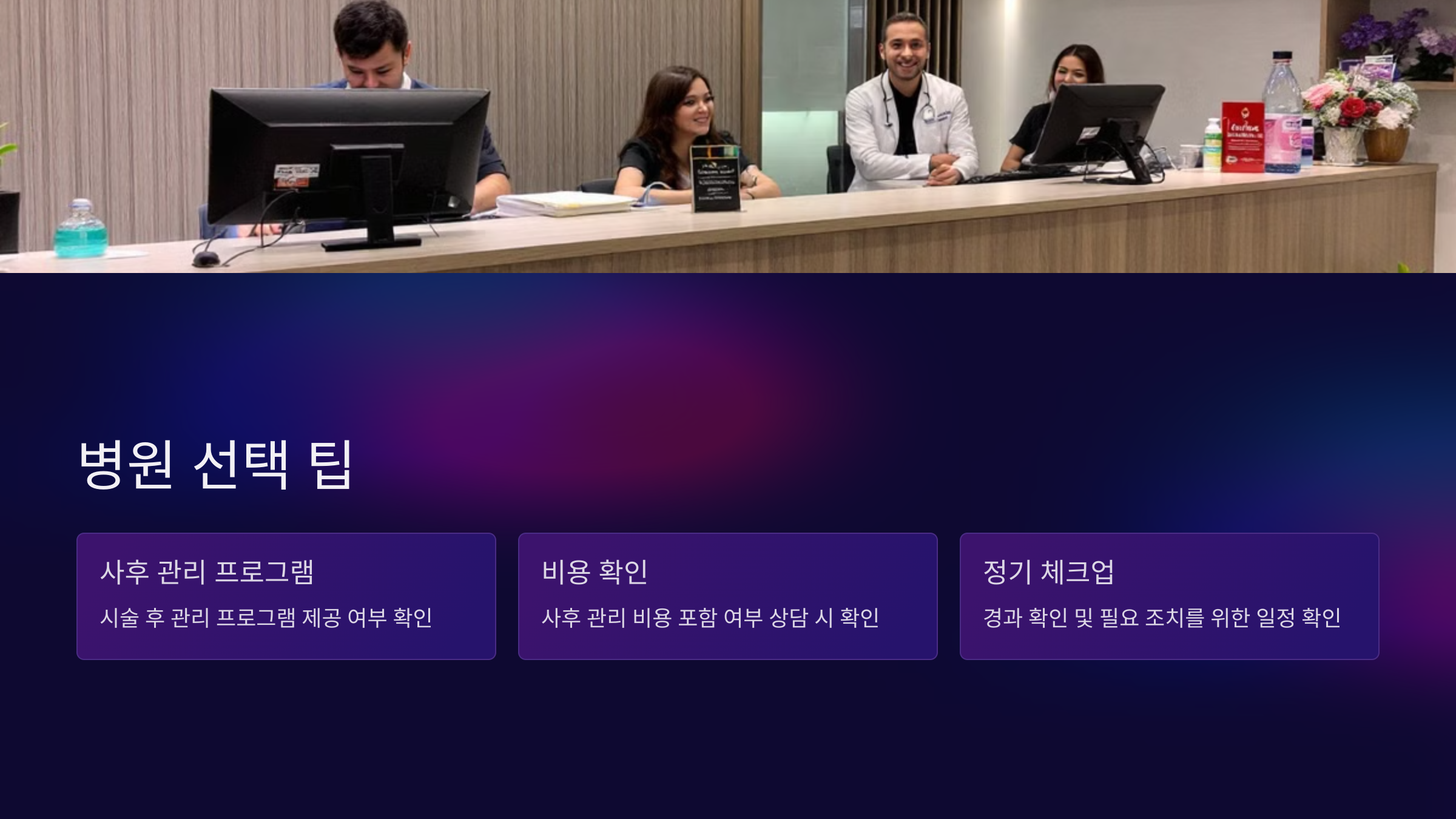 - 시술 후 관리를 위해 병원에서 사후 관리 프로그램이 제공되는지 확인하세요.