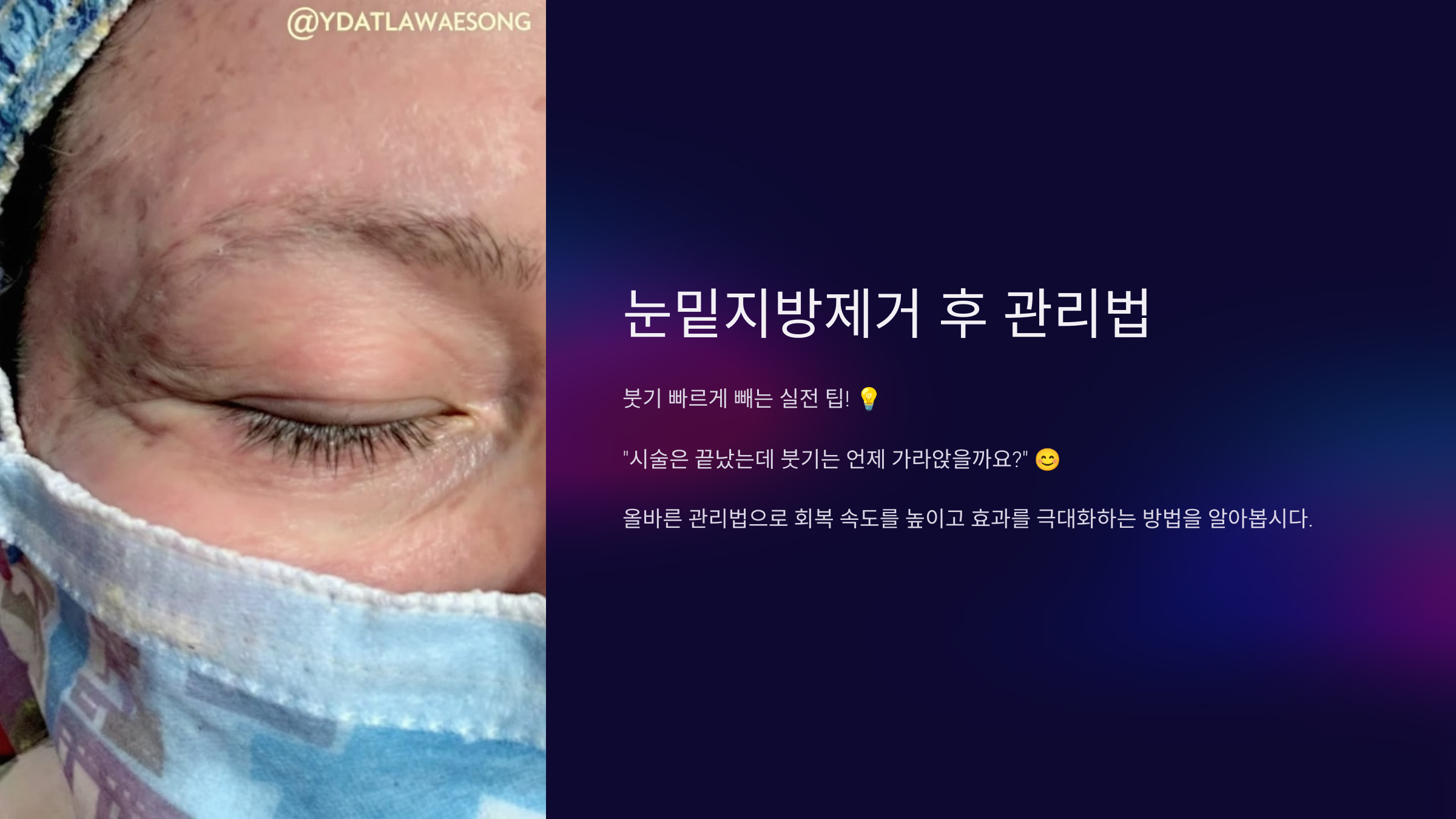 눈밑지방제거 시술을 마치고 거울을 보았을 때, 혹시 붓기로 인해 결과가 잘 보이지 않아 걱정하셨나요? 저 역시 처음엔 붓기가 생각보다 오래 갈까 봐 초조했던 기억이 납니다. 하지만 올바른 관리법을 알고 나니 회복 속도가 훨씬 빨라지더라고요.