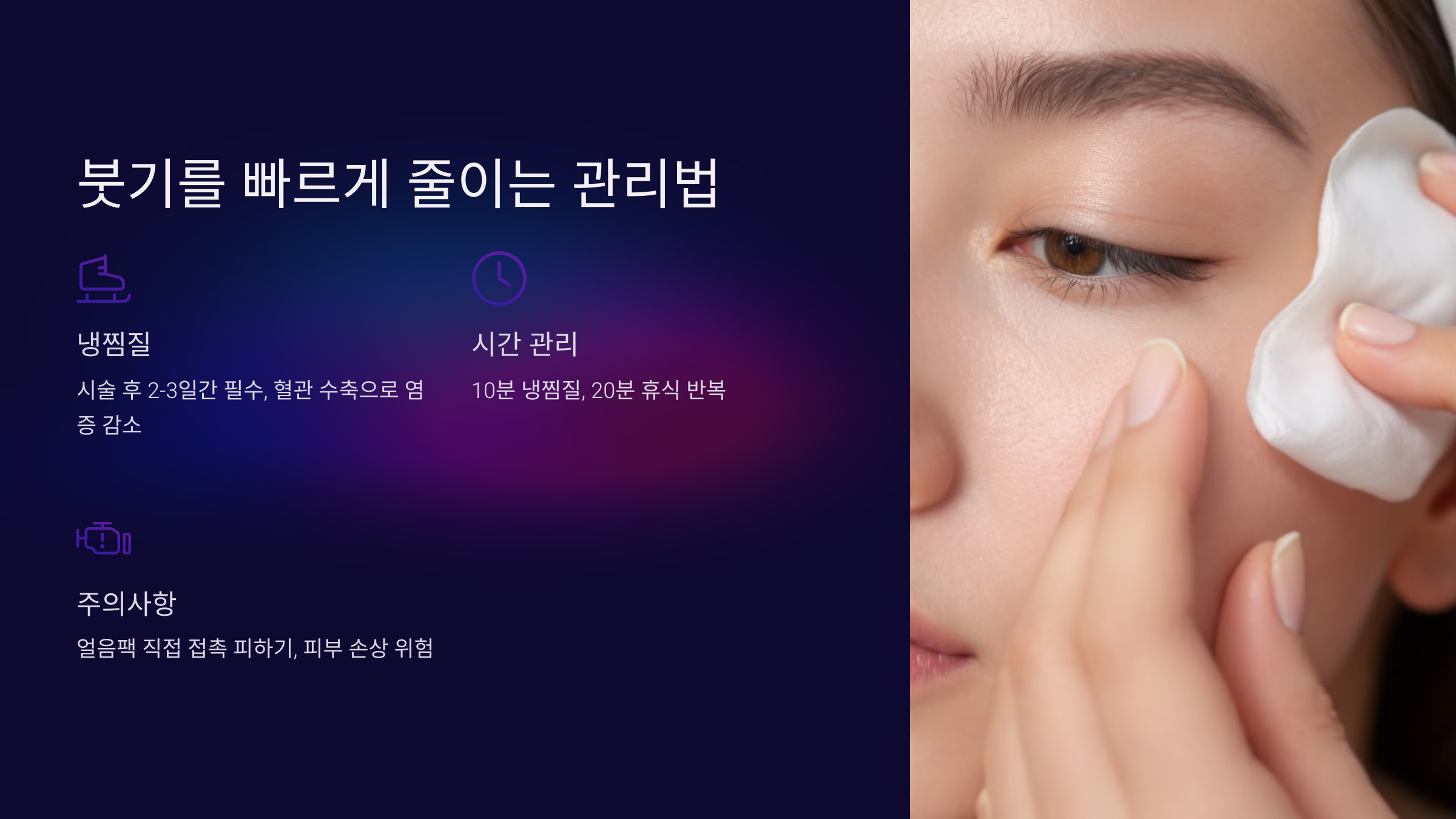- 시술 후 2~3일 동안은 냉찜질이 필수입니다.