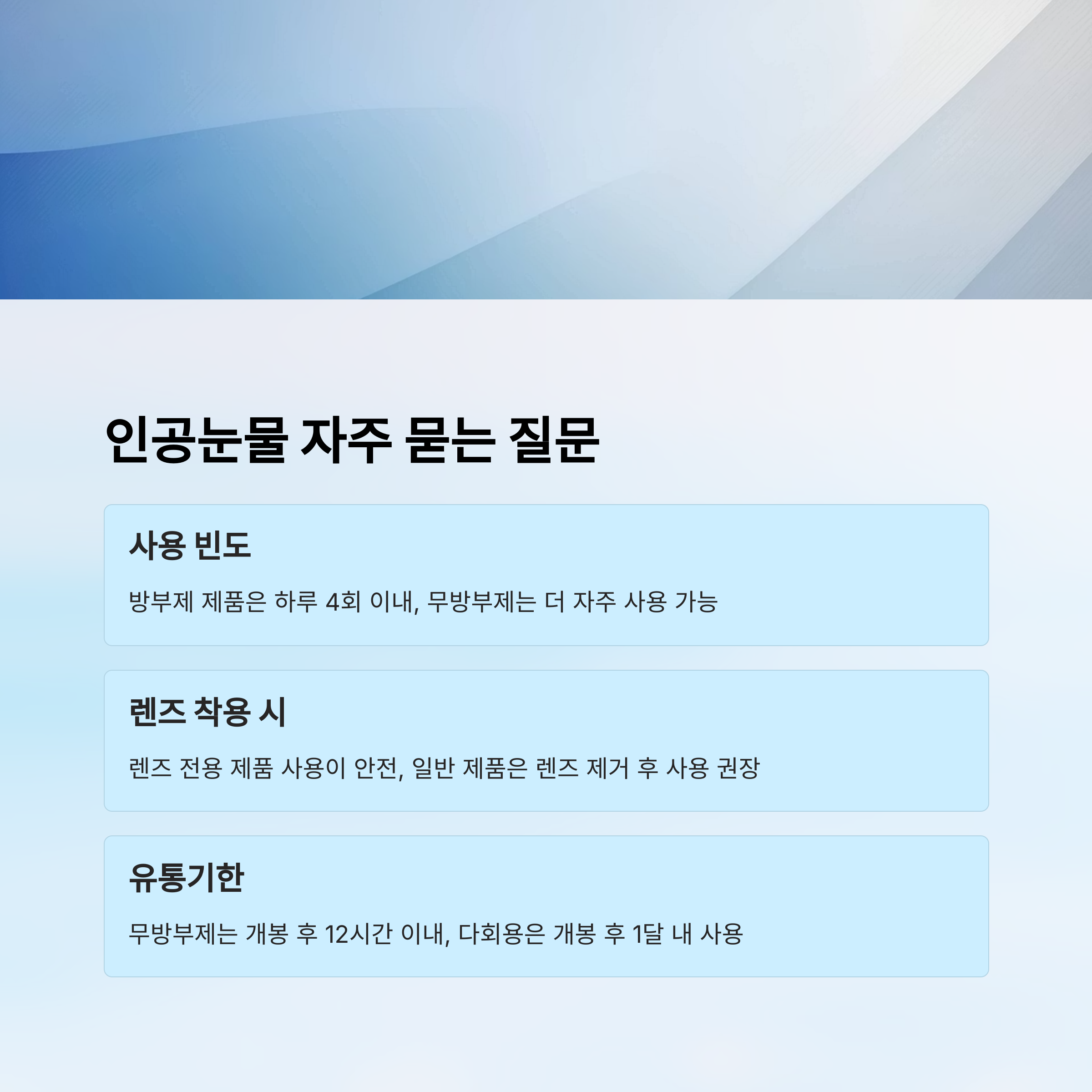 이 표를 참고하면 자신에게 맞는 인공눈물을 좀 더 쉽게 선택할 수 있어요. 특히 렌즈 착용 여부나 사용 빈도를 고려해서 고르는 게 포인트예요 😎