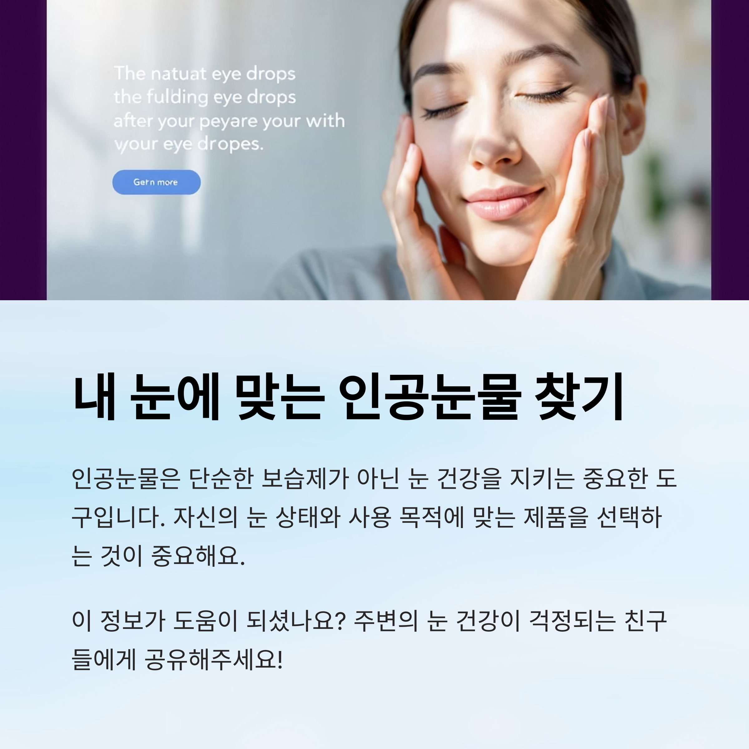 눈이 뻑뻑하거나 피곤할 때 가장 먼저 찾게 되는 게 바로 인공눈물이죠 💧 하지만 약국에서 보이는 제품마다 제형도 다르고, 어떤 걸 골라야 할지 헷갈릴 때가 많아요.