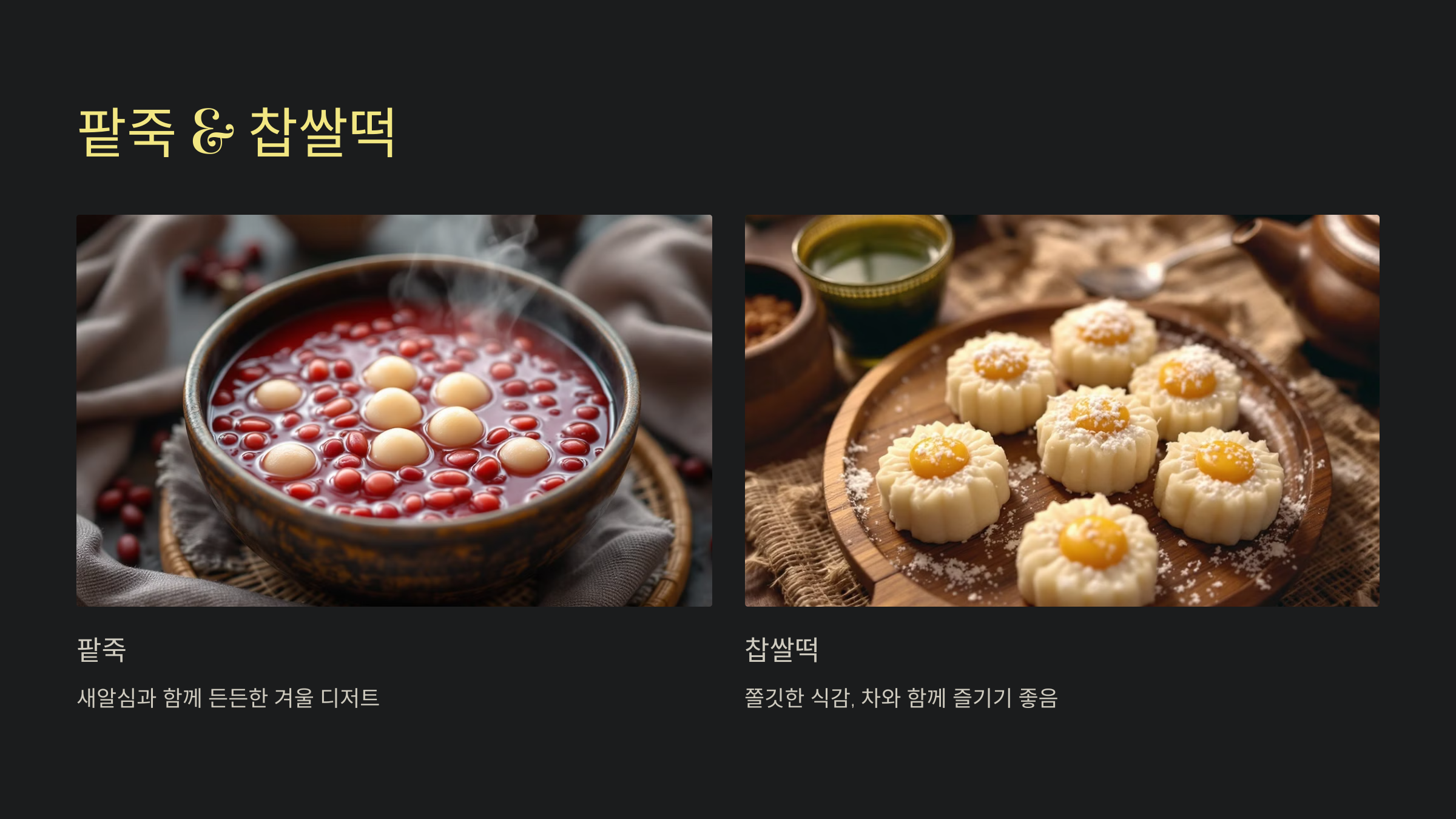 🍠 4. 한국식 디저트: 팥죽 & 찹쌀떡