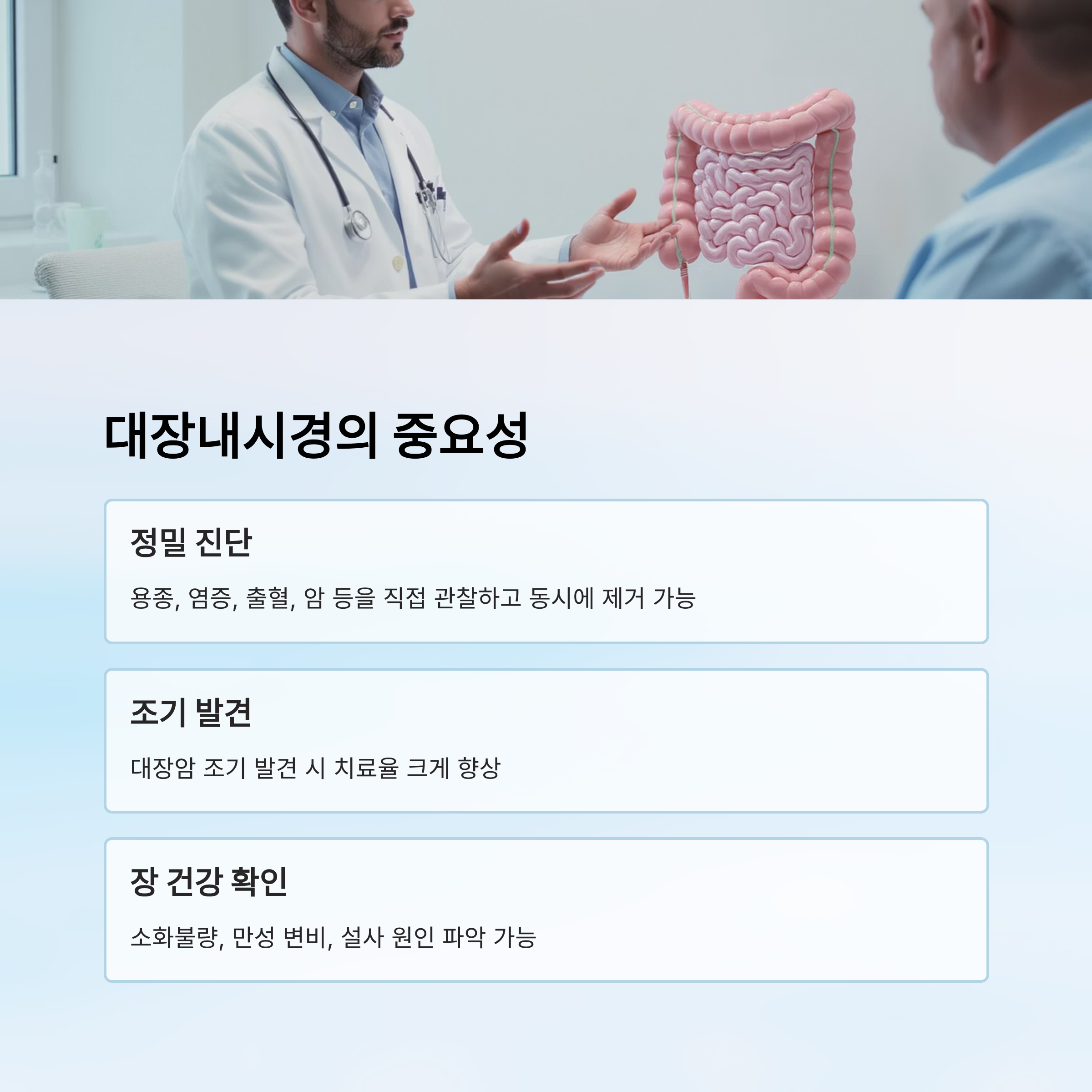 대장내시경은 대장 내부를 직접 관찰해 용종, 염증, 출혈, 암 등을 확인할 수 있는 검사예요. 다른 영상 장비보다 정밀도가 높고, 동시에 용종 제거까지 가능하다는 장점이 있어요. 이런 이유로 대장 건강을 지키기 위한 가장 확실한 방법 중 하나로 꼽히고 있답니다.