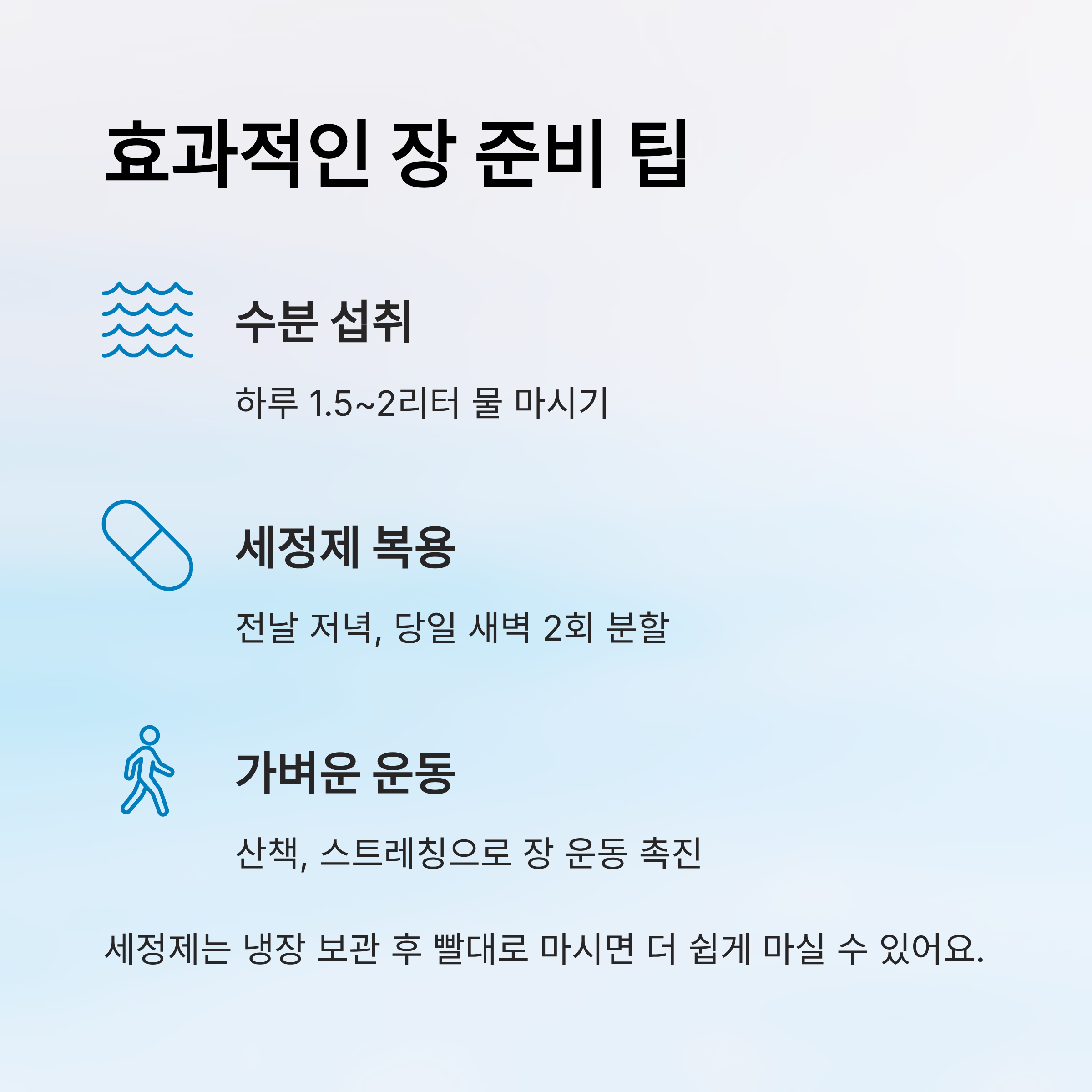 이 팁들을 지키면 장 세정 효과가 훨씬 좋아져요. 의사들도 환자가 지침을 철저히 따랐을 때 검사 성공률이 크게 올라간다고 말한답니다. 😊