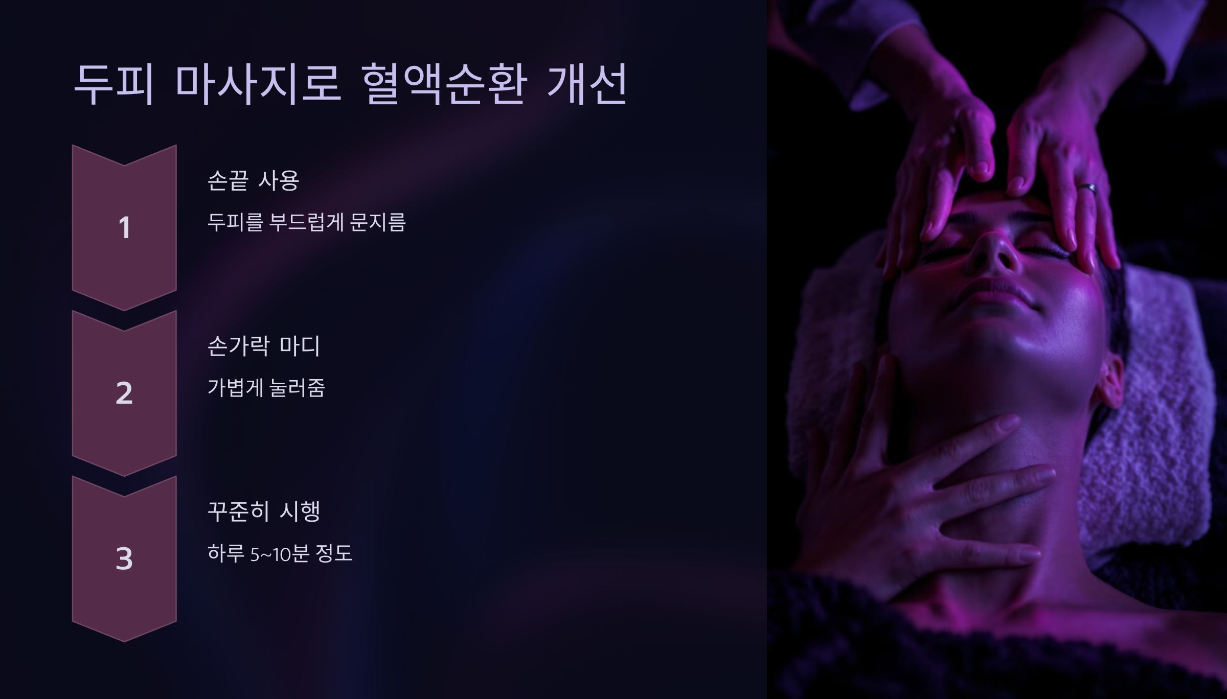 두피 마사지는 혈액순환을 촉진하여 모근을 강화하고, 스트레스 완화에도 도움이 됩니다.