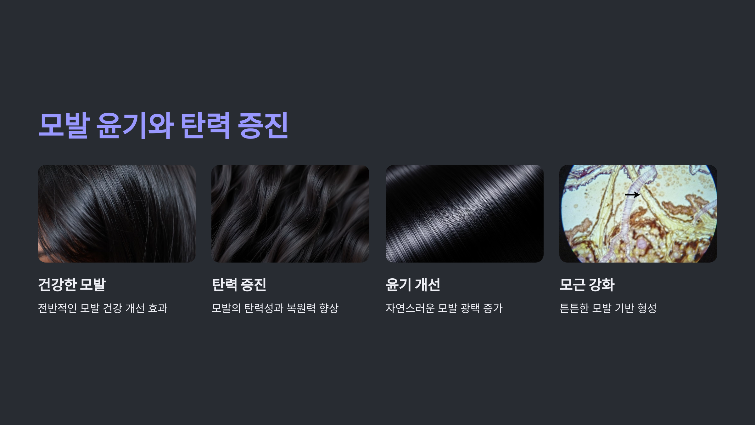 - 효과: 두피 보습과 모근 강화, 윤기 있는 머릿결 완성
