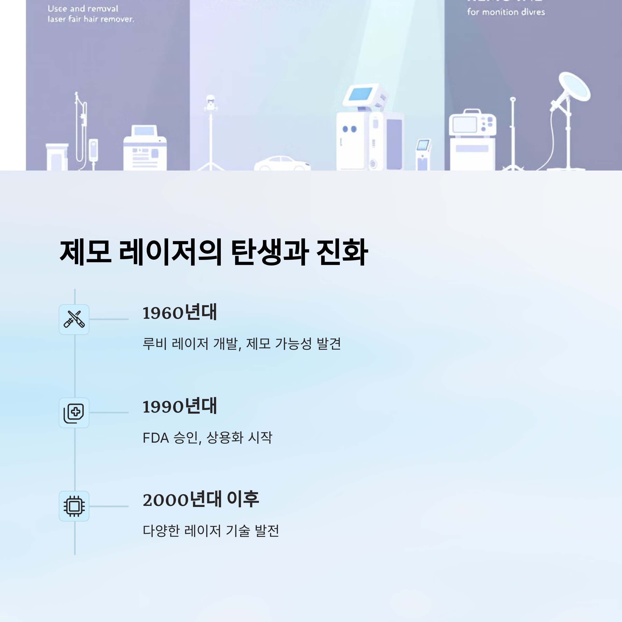 제모 레이저 기술은 1990년대 후반부터 본격적으로 발전하기 시작했어요. 그 전까지는 왁싱, 제모 크림, 면도처럼 일시적이고 자극적인 방식이 대부분이었죠. 하지만 레이저는 모낭을 직접 파괴해서 털이 다시 자라지 않도록 돕는 기술이라 혁명적인 변화였답니다.