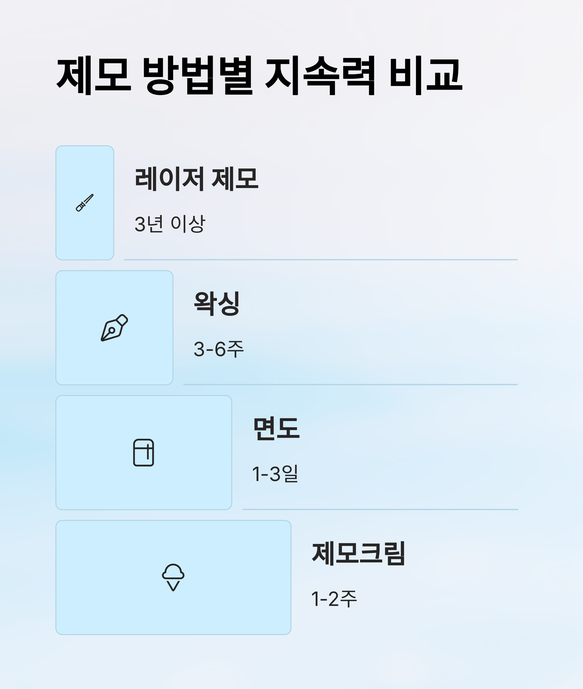 제모 방법별 지속력 비교 🧪