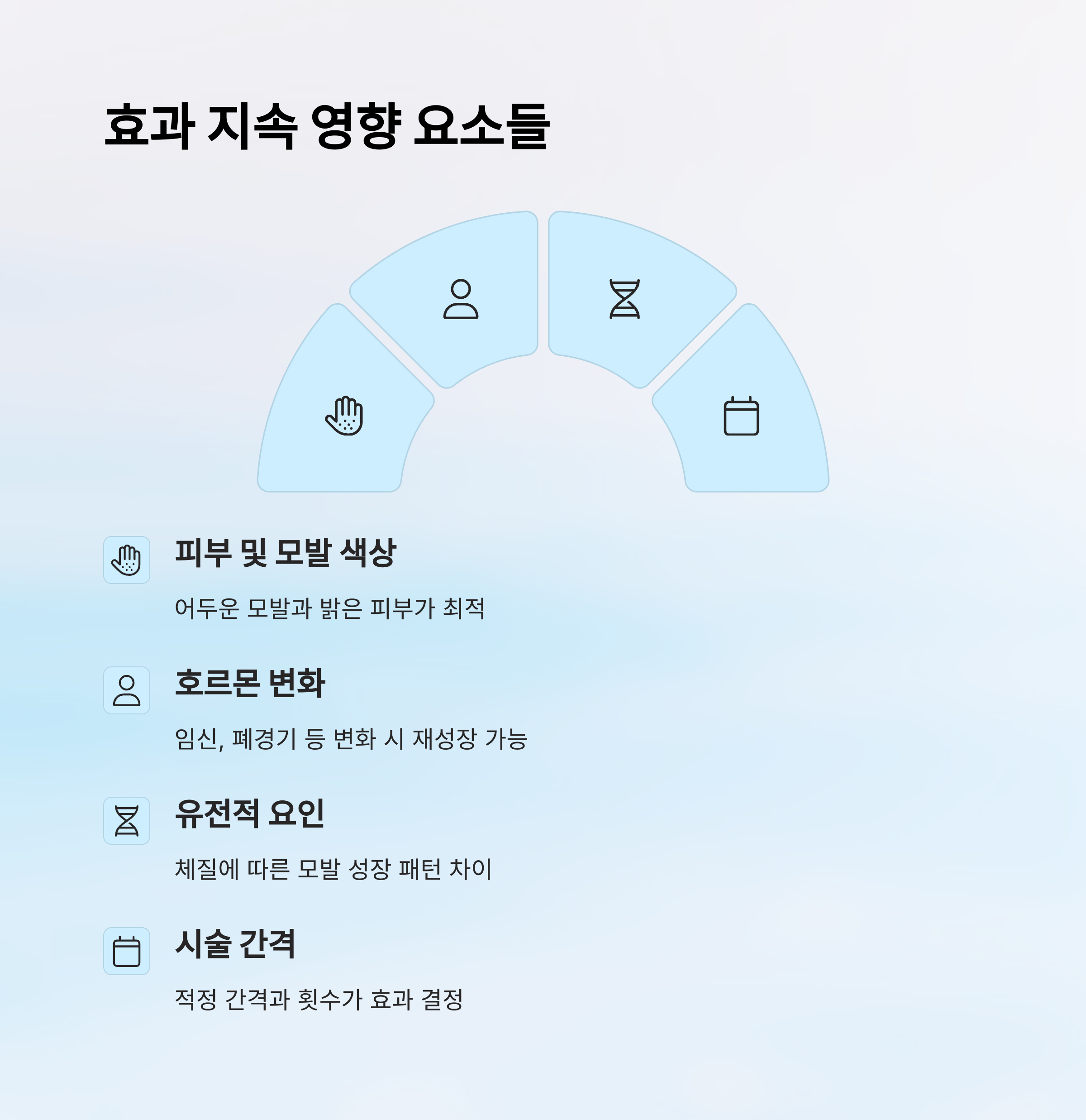 이처럼 다양한 요소가 얽혀 있기 때문에, 한 사람의 제모 효과가 다른 사람에게는 똑같이 적용되지 않을 수도 있어요. 자신에게 맞는 방법과 계획을 세우는 것이 무엇보다 중요하다는 점, 꼭 기억해 주세요 😊