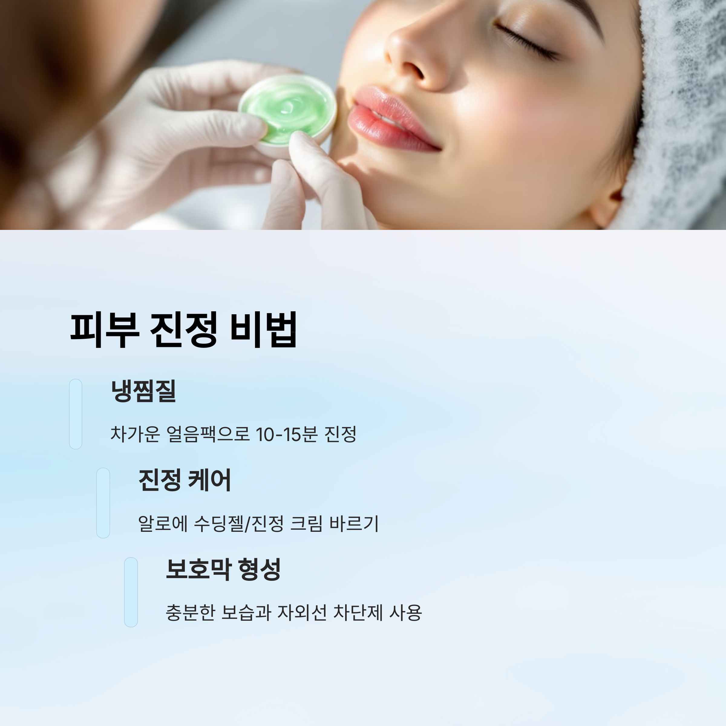 시술 직후에는 냉찜질이나 쿨링겔을 이용해 피부 온도를 먼저 낮춰주는 게 좋아요. 얼음팩은 천에 싸서 사용하거나 냉장고에 넣은 진정 팩을 활용하면 효과적이에요. 이 단계는 반드시 거쳐주세요!
