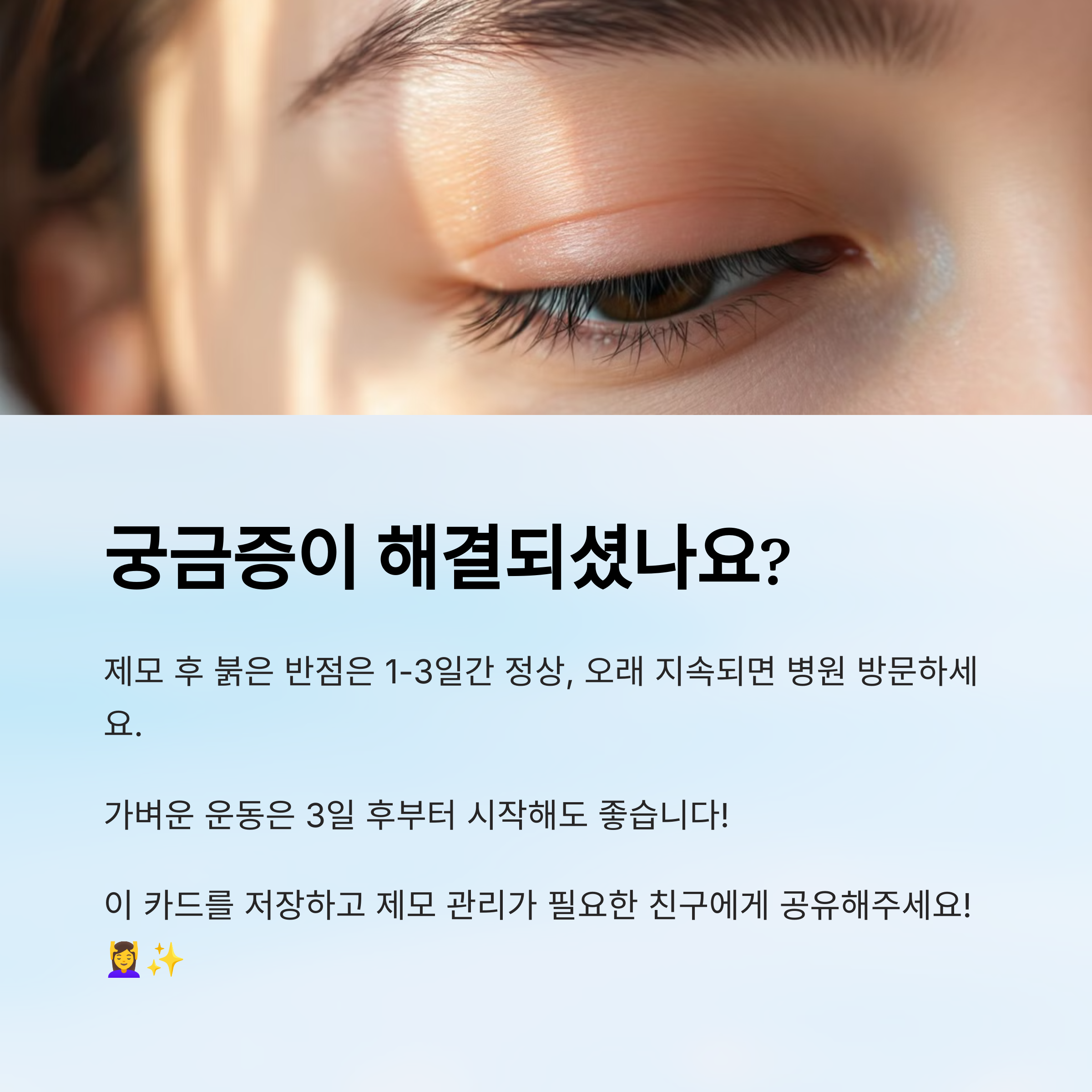 이 5가지만 잘 지켜도 부작용 없이 매끈한 피부를 유지할 수 있어요. “시술보다 관리가 더 중요하다”는 말, 진짜예요! 😉