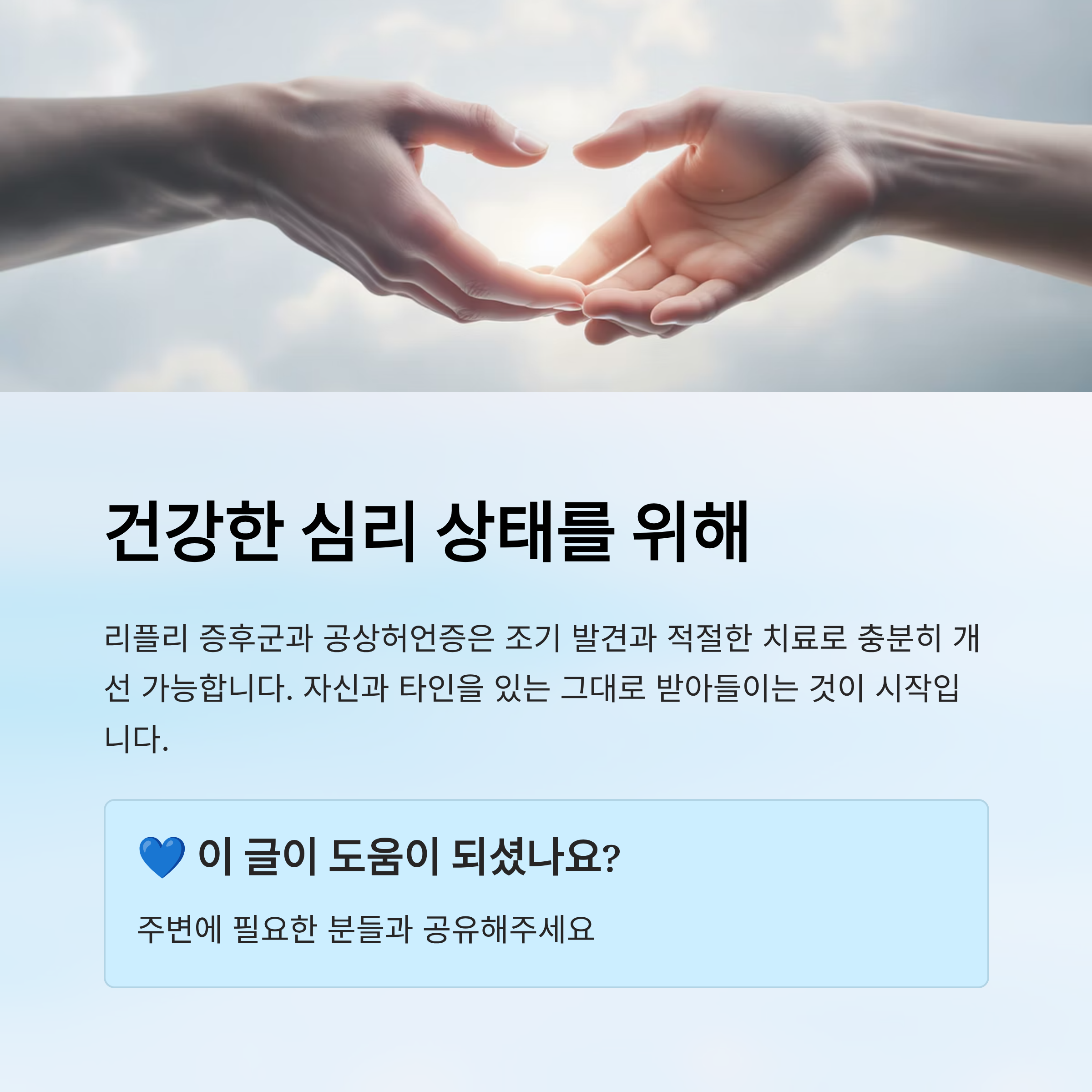 심리적인 문제는 누구에게나 발생할 수 있어요. 중요한 건 ‘그걸 어떻게 다루느냐’이고, 주변 사람들의 역할도 절대적으로 중요해요. 우리 모두의 인식 변화가, 더 건강한 사회를 만드는 첫걸음이 될 수 있어요. 😊