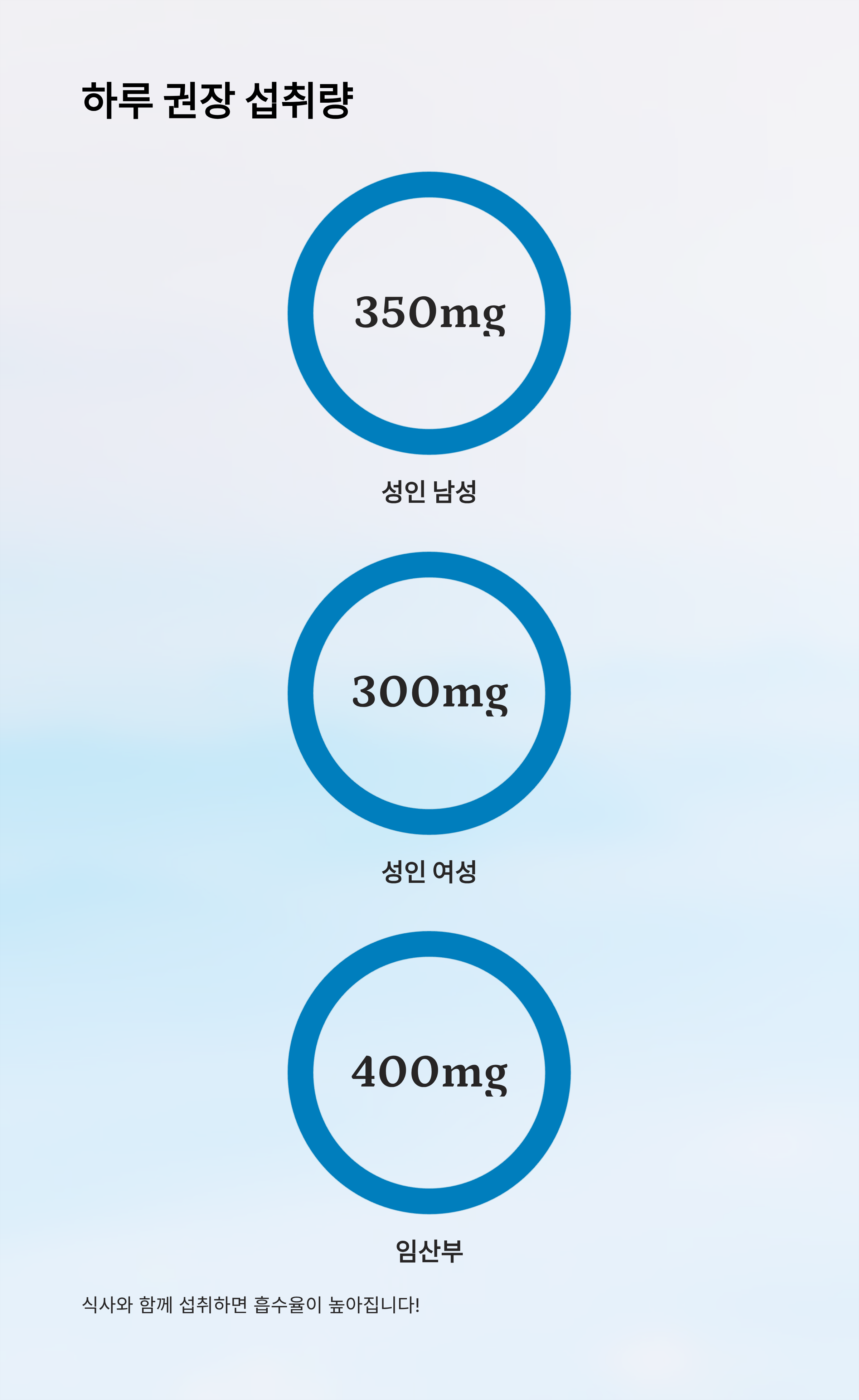 | 성인 남성 | 약 350mg | 식사와 함께 보충 |
