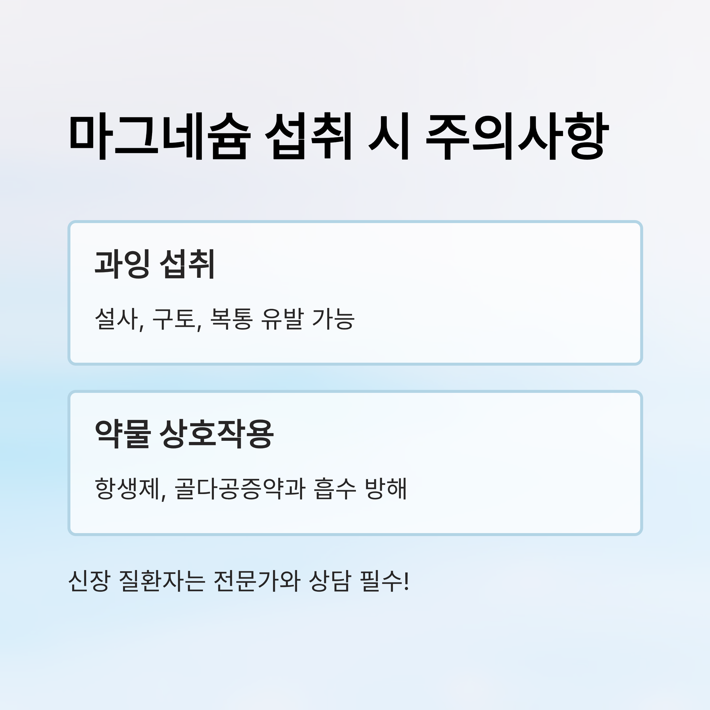🚨 마그네슘 부작용 및 주의사항 표