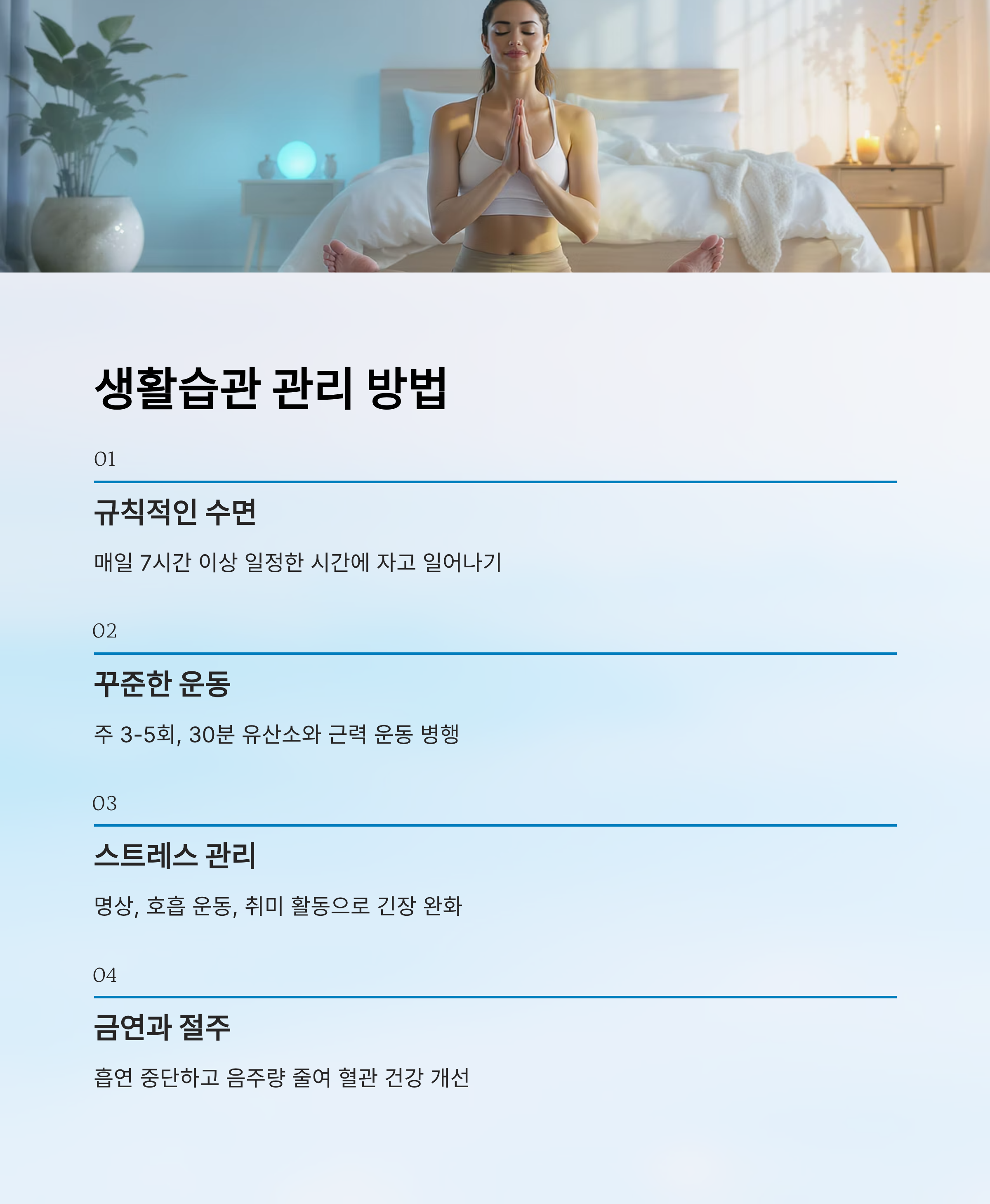 | 금연·절주 | 흡연 중단, 음주 줄이기 | 혈관 건강 개선, 염증 감소 |