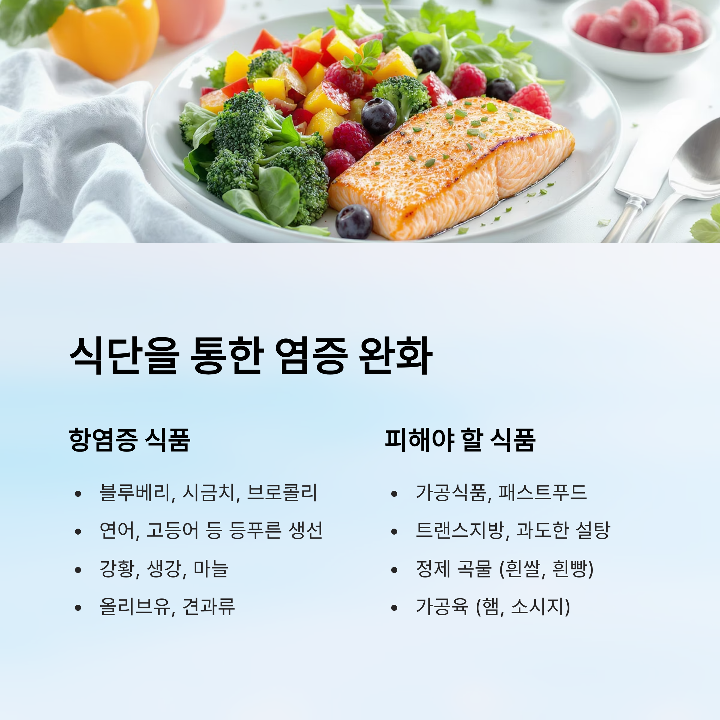 | 체중 관리 | 균형 식단, 운동 병행 | 염증성 사이토카인 감소 |
