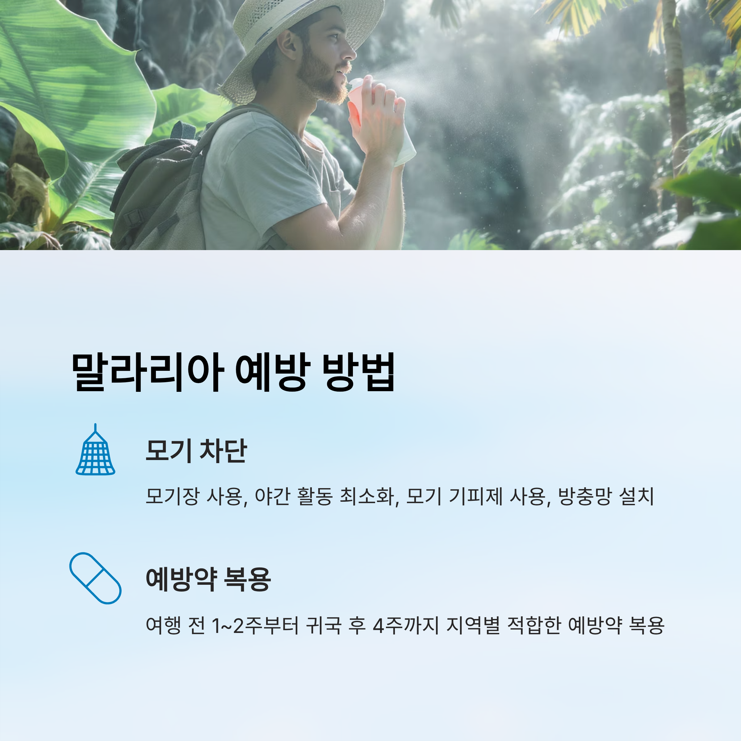👉 정리하면, 모기 차단 + 예방약 복용이 말라리아 예방의 핵심이에요. 특히 열대 지역을 여행할 계획이 있다면, 준비 단계에서부터 예방약을 챙기고, 여행 중에는 모기 노출을 최소화하는 생활 습관을 꼭 지켜야 합니다.
