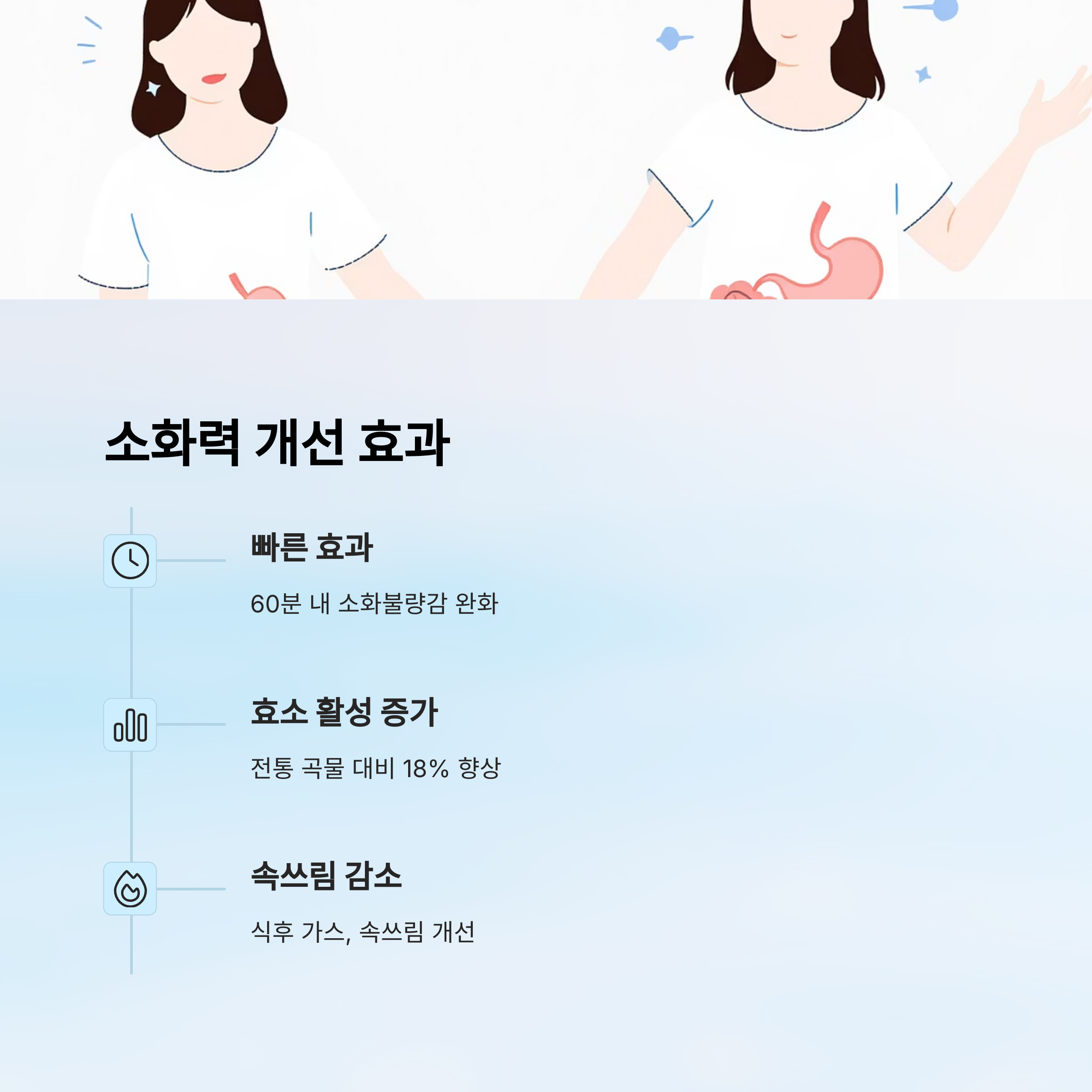 | 소화 개선 | 소화 효소 풍부, 위장 부담 감소 |