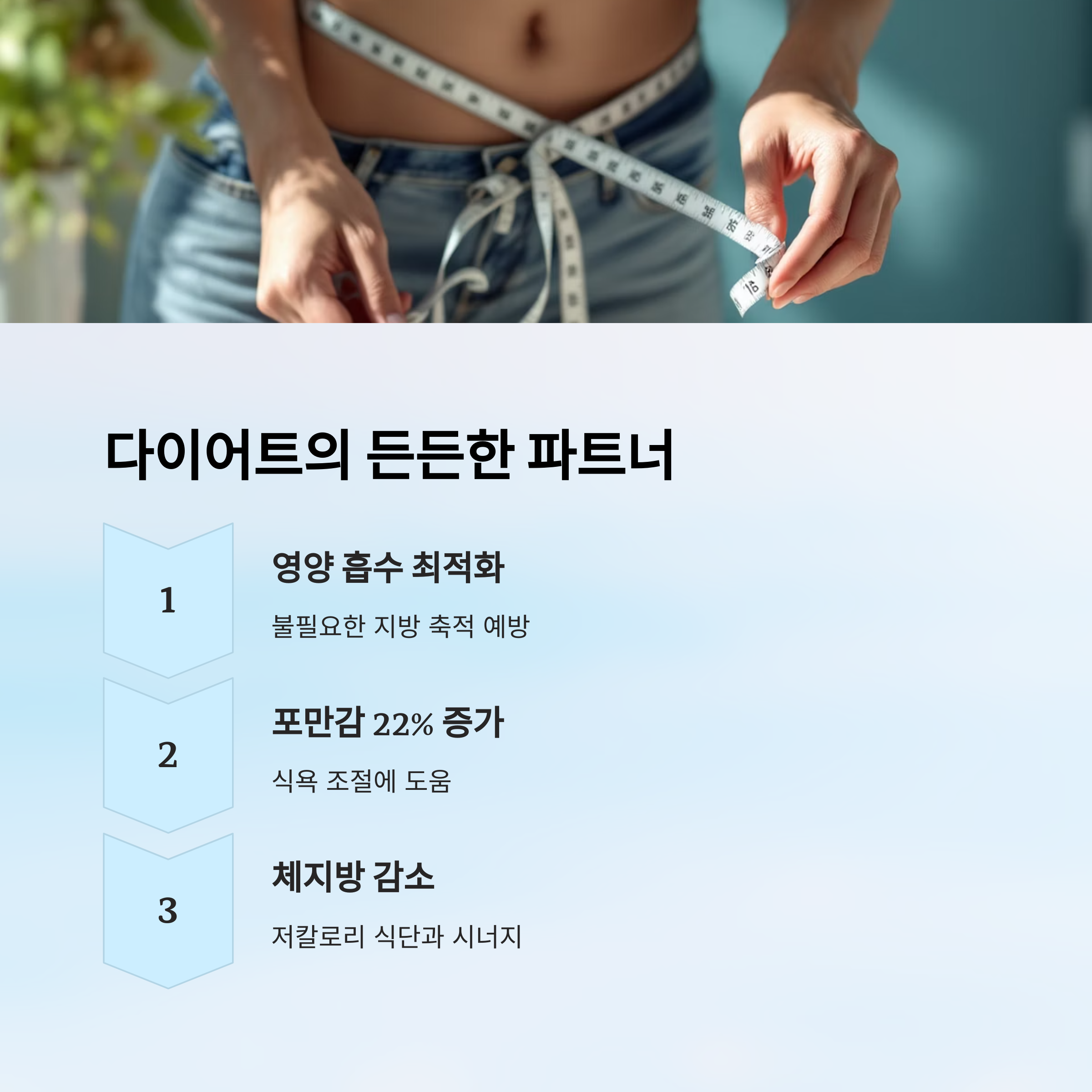 A2. 네, 오히려 다이어트 중 섭취를 권장해요! 포만감 증가와 지방 대사 촉진 효과가 있어 체중 조절에 도움을 줄 수 있어요. 🥗