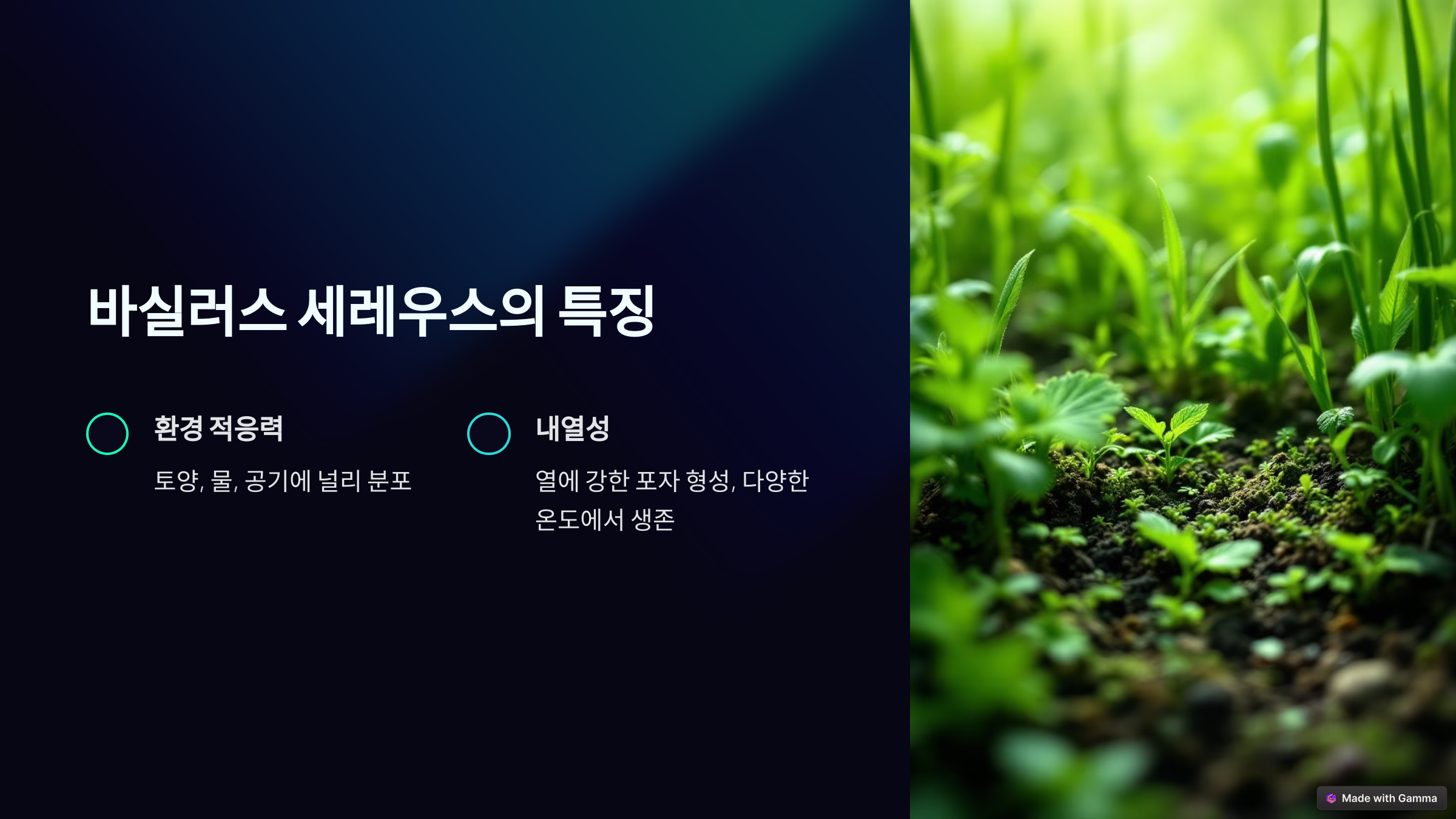 바실러스 세레우스는 그람양성 간균으로, 자연환경에서 흔히 발견되는 세균 중 하나입니다. 이 세균은 혐기성 조건에서도 생존할 수 있는 내열성 포자를 형성하며, 다양한 온도에서도 증식할 수 있는 특성을 가지고 있습니다. 특히 30~37℃에서 가장 빠르게 성장하지만, 냉장 온도에서도 서서히 증식할 수 있습니다. 이는 식품 보관 시 적절한 온도 관리가 이루어지지 않을 경우, 식품 내에서 세균이 증식할 수 있음을 의미합니다.