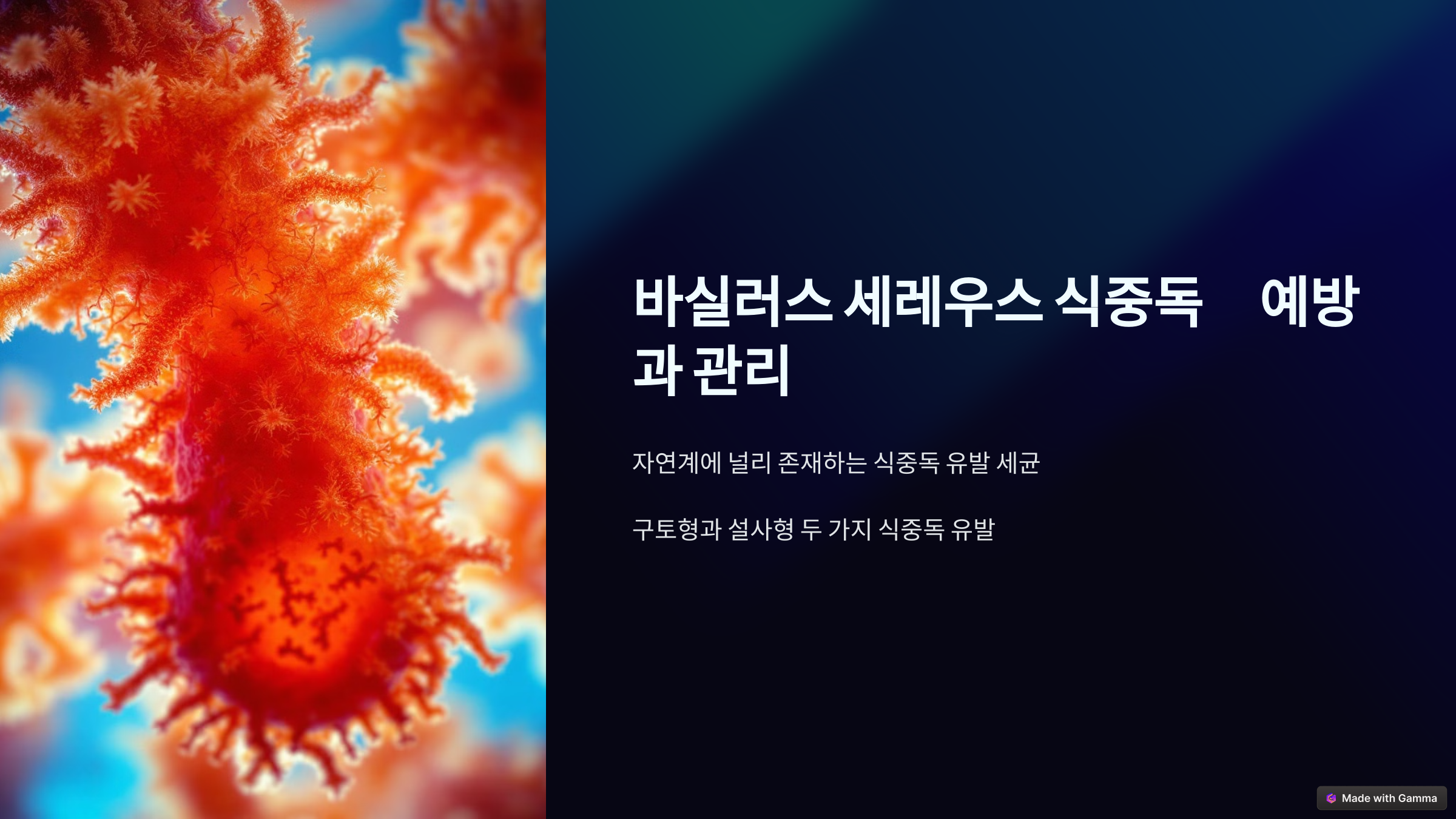 이 글에서는 바실러스 세레우스 식중독의 특징, 예방법, 그리고 관리 방법에 대해 자세히 살펴보겠습니다.