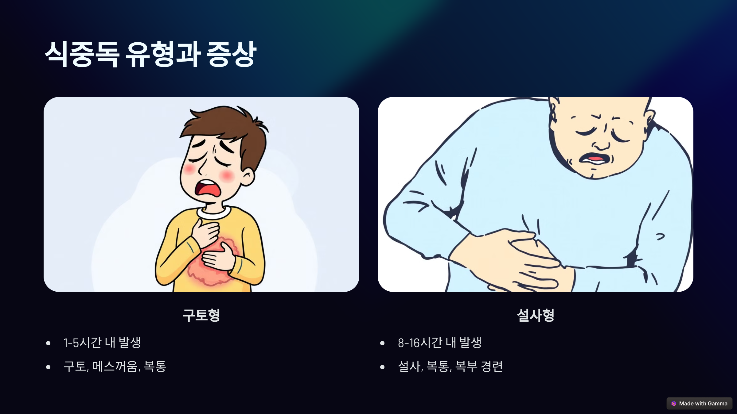 구토형은 주로 조리된 후 상온에 방치된 쌀, 면류, 튀김류와 같은 고탄수화물 음식에서 발생하는 경우가 많습니다. 세균이 증식하면서 생성된 독소가 음식을 통해 체내로 들어가면, 음식 섭취 후 1~5시간 이내에 구토, 메스꺼움, 복통 등이 나타날 수 있습니다. 이 증상은 대체로 24시간 이내에 완화되지만, 고령자나 면역력이 약한 사람의 경우 심각한 상태로 진행될 수 있습니다.