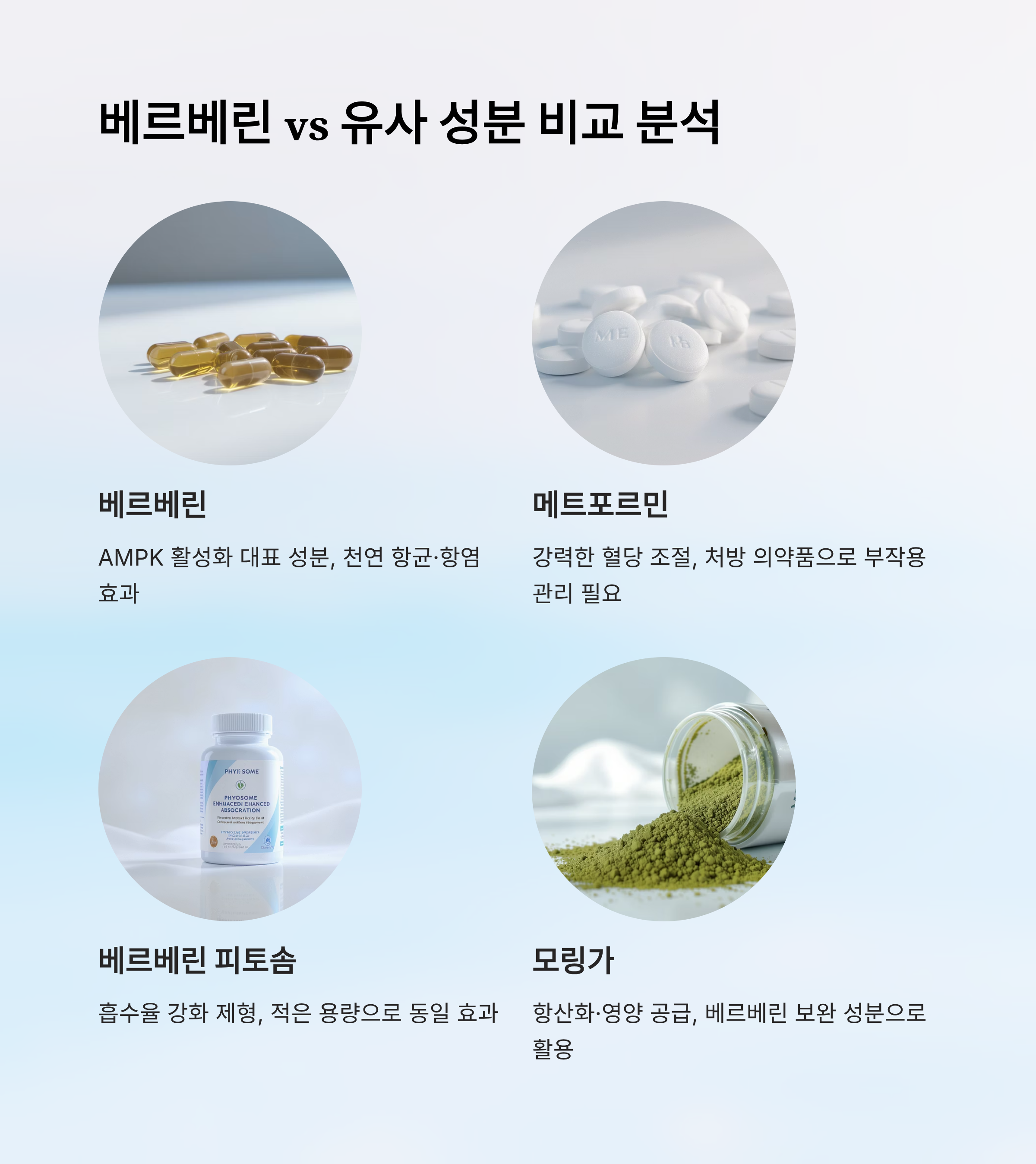| 베르베린 피토솜 | 혈당·체중 개선 | 흡수율 강화 제형 | 적은 용량으로 동일 효과 가능 |