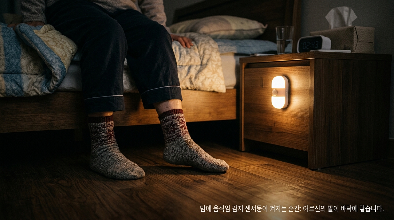 침실의 경우, 자다 깨서 화장실을 갈 때 사고가 잦습니다. 침대 높이는 무릎 높이와 비슷하게 조절하여 일어설 때 무리가 없어야 하며, 침대 옆에는 반드시 손을 뻗으면 닿는 곳에 조명 스위치나 동작 감지 센서등을 설치해야 합니다. 2026년 스마트홈 기술을 활용하면 발이 바닥에 닿는 순간 은은한 간접등이 켜지게 설정할 수 있어 매우 안전합니다.