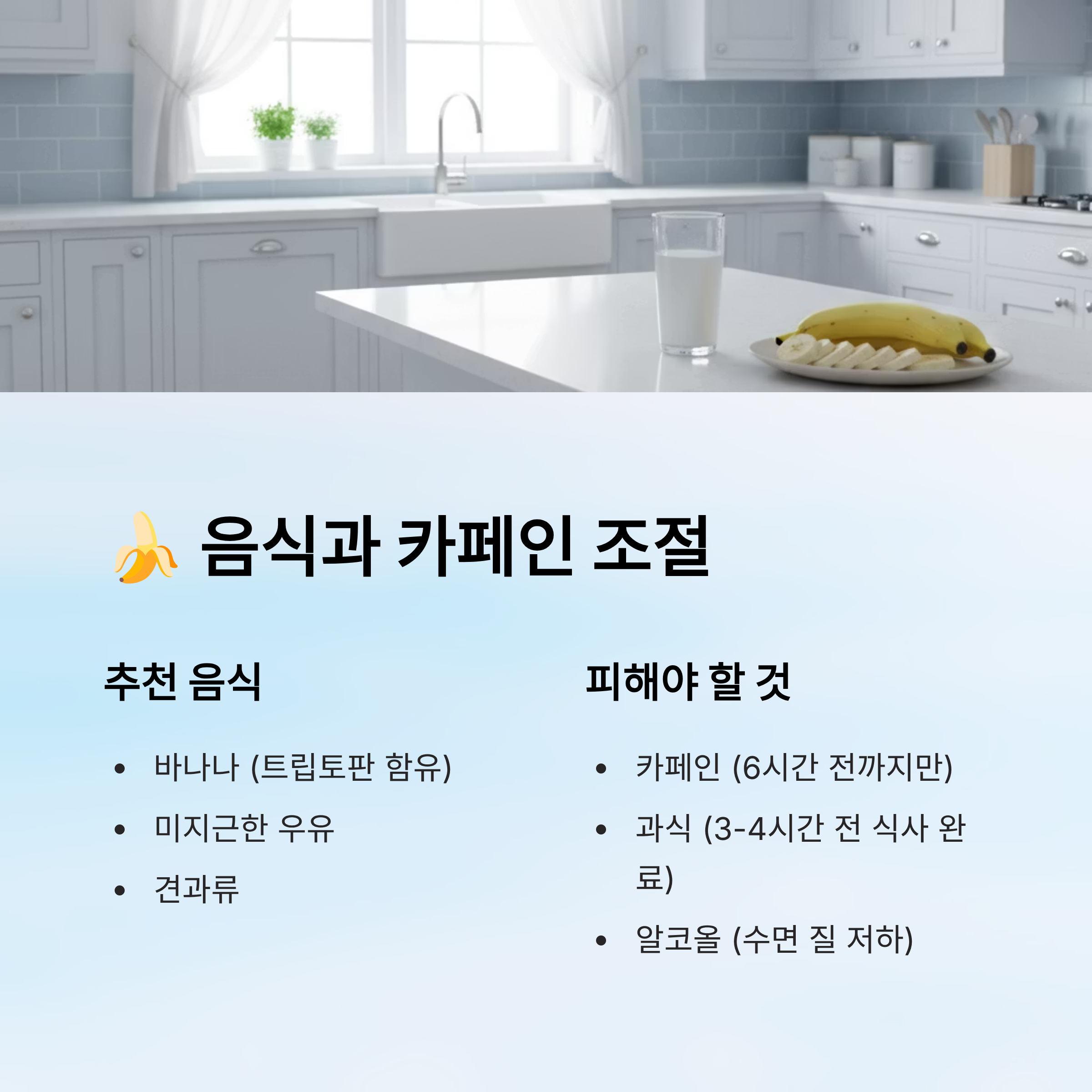 | 바나나, 우유 | 트립토판 함유, 수면 유도 | 추천 |