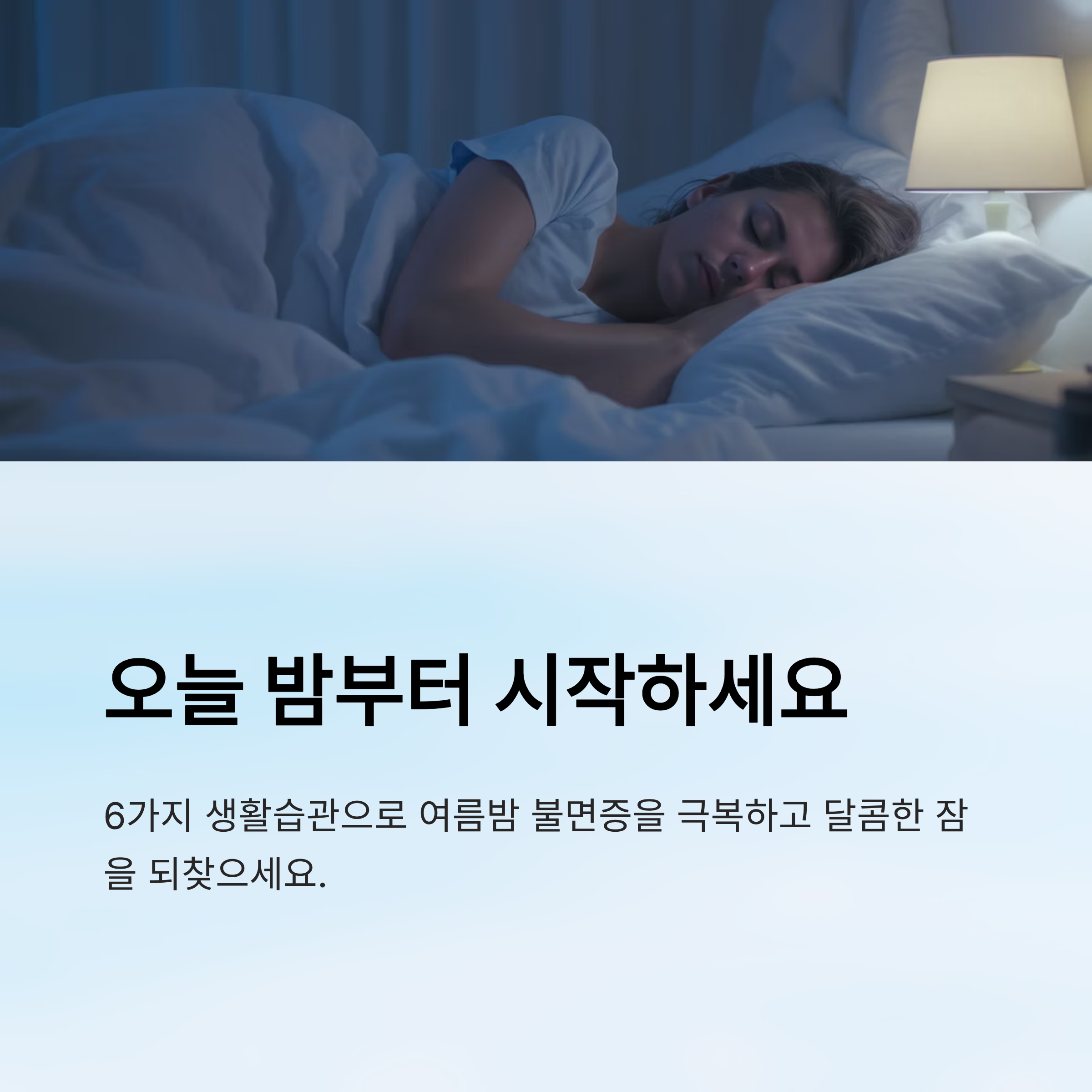 생활 리듬이 무너지면 수면 질도 무너져요. 특히 여름철은 생체리듬이 흔들리기 쉬운 계절이니, 더더욱 규칙적인 패턴이 중요하답니다.