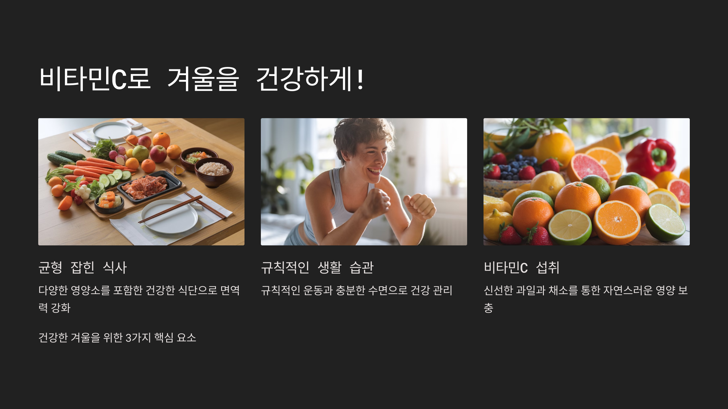 이처럼 비타민C는 겨울철 건강 관리의 필수 요소라고 할 수 있습니다.