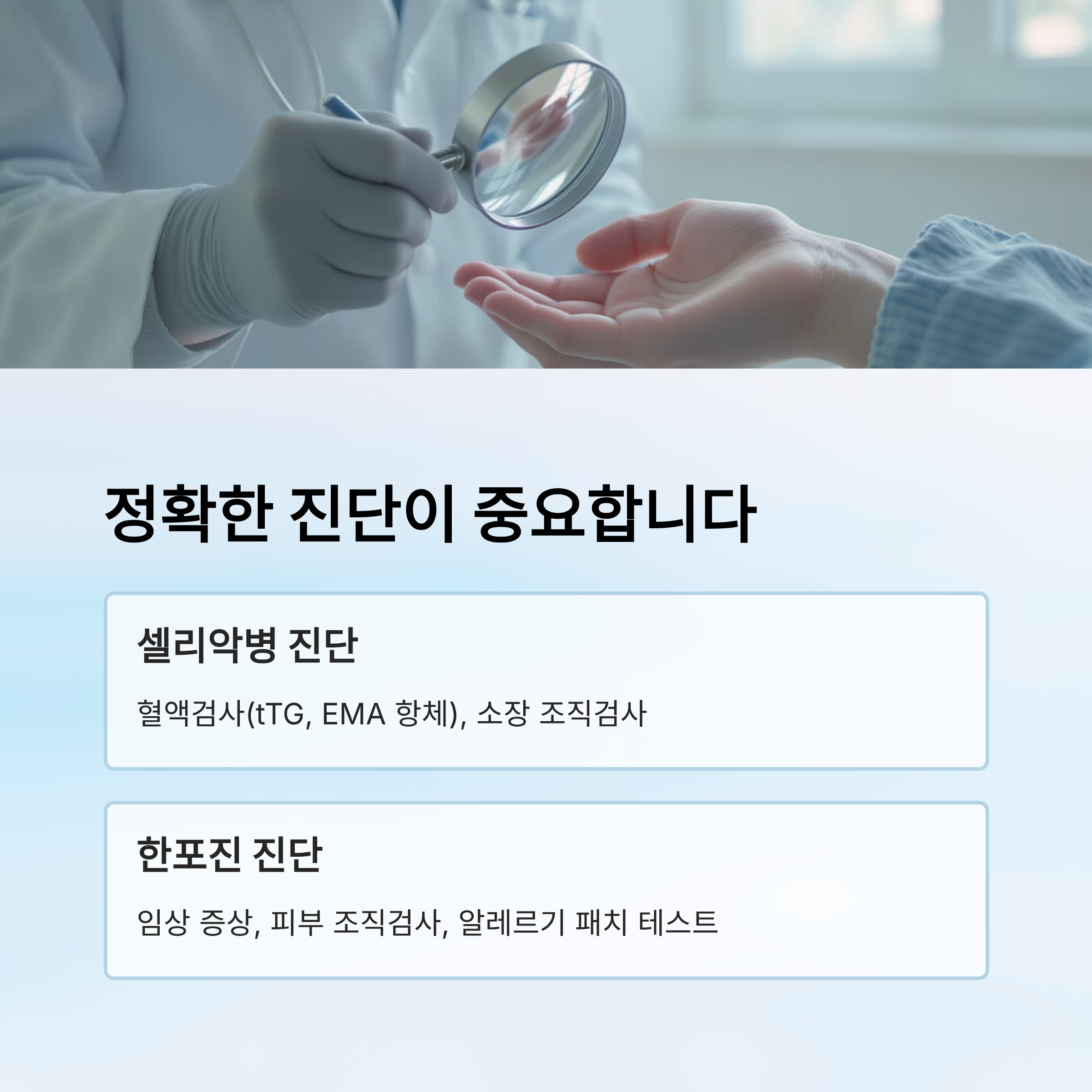 | 검사 항목 | 셀리악병 | 한포진 |